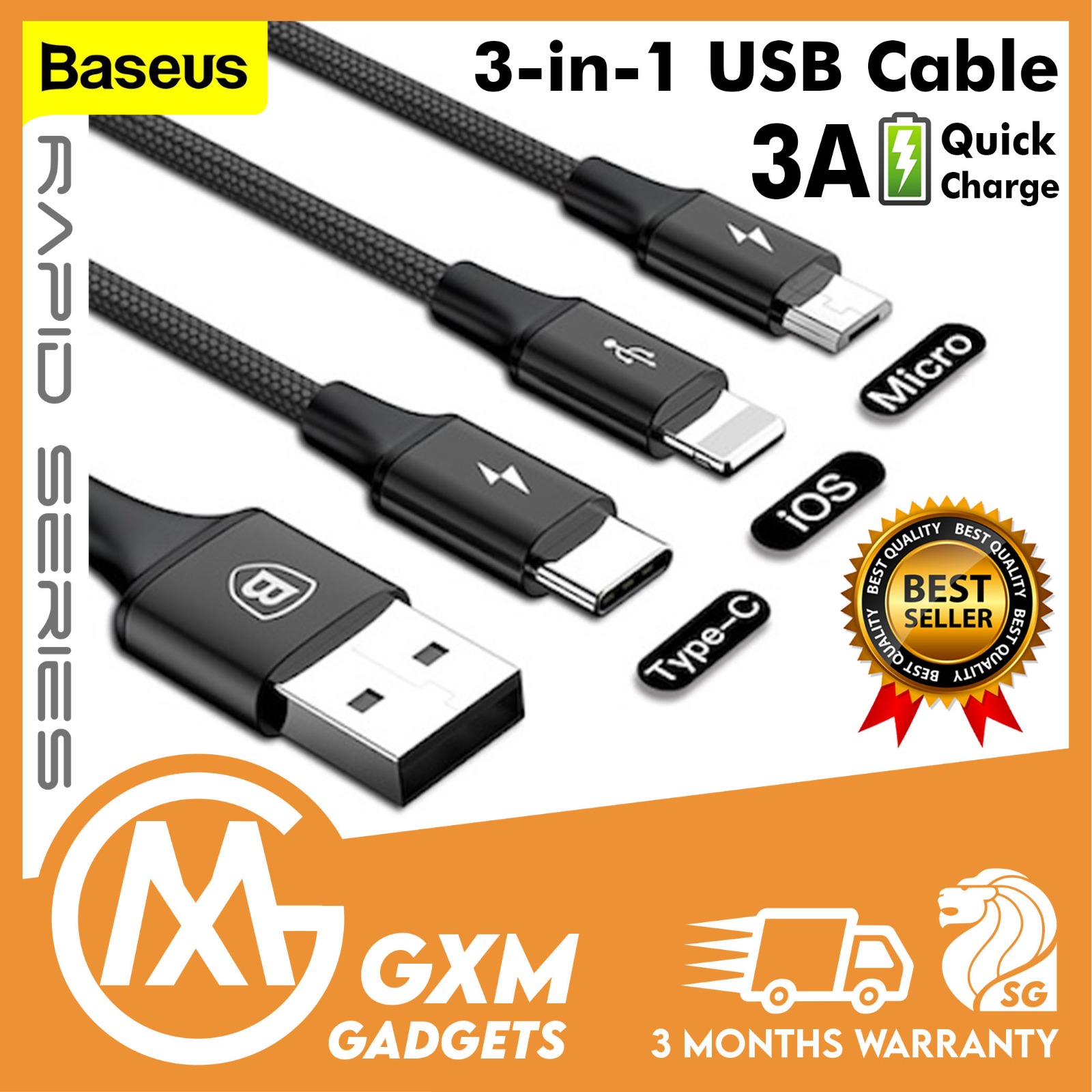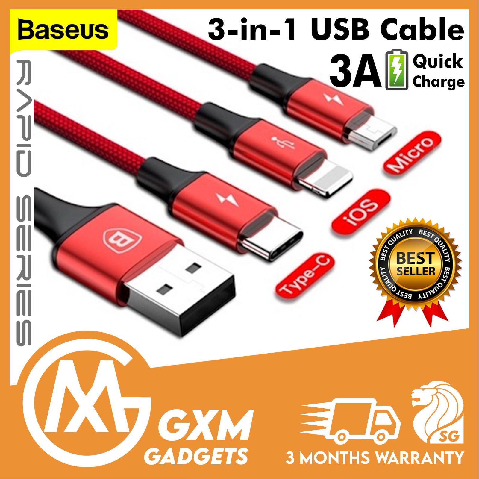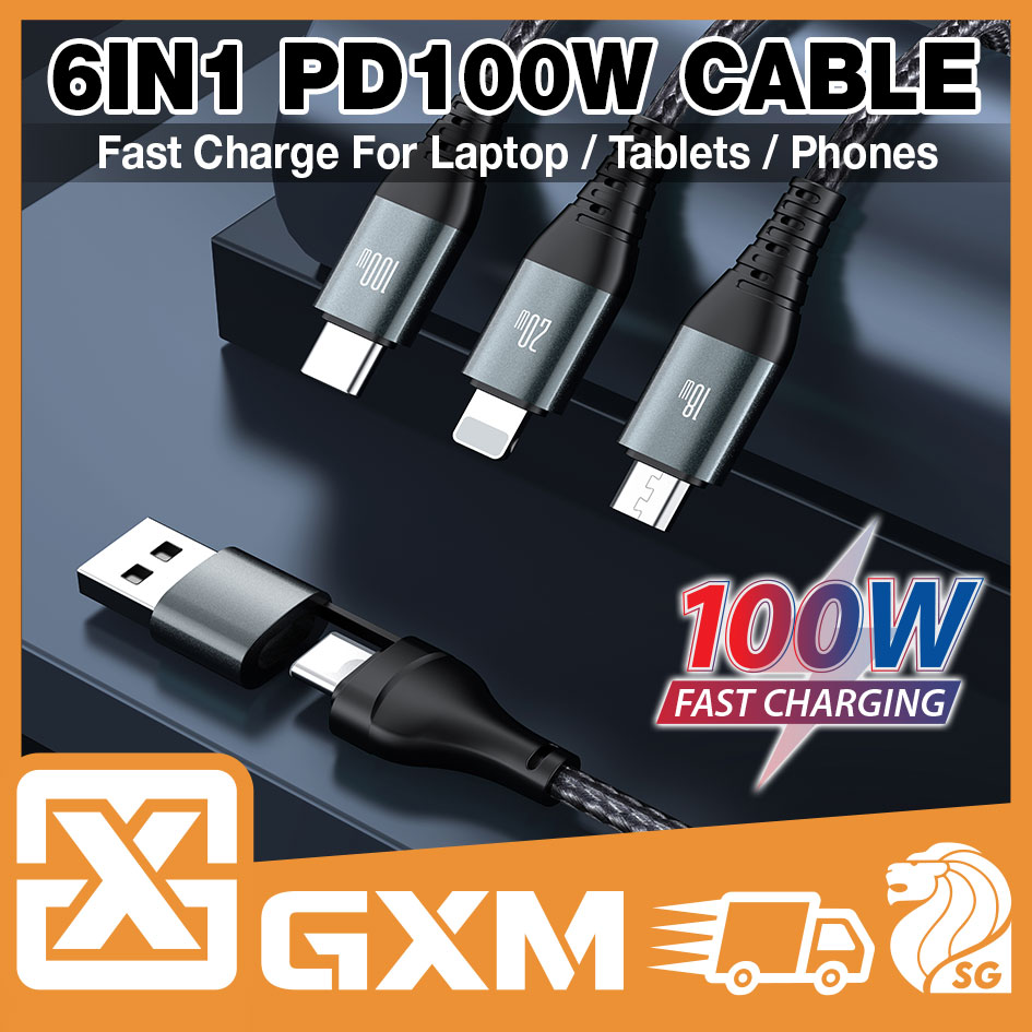 GXM BASEUS 3in1 6in1 100W Quick Fast Charge Charging Data Cable for Laptop Tablets Phones For iPhone 14 13 12 Pro Max Lightning USB Type C to Type C MicroUSB MacBook Data Transfer Samsung Huawei OPPO