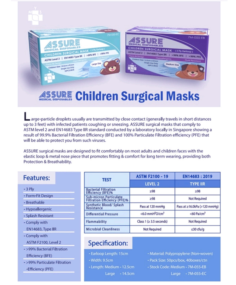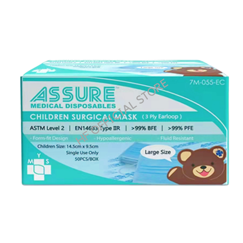 INSTOCKASSURE Surgical Mask Kids Children 50’s/box 3-ply Earloop Disposable 99% BFE Medical Mouth Mask Eliminate Germ Assure Authentic Original