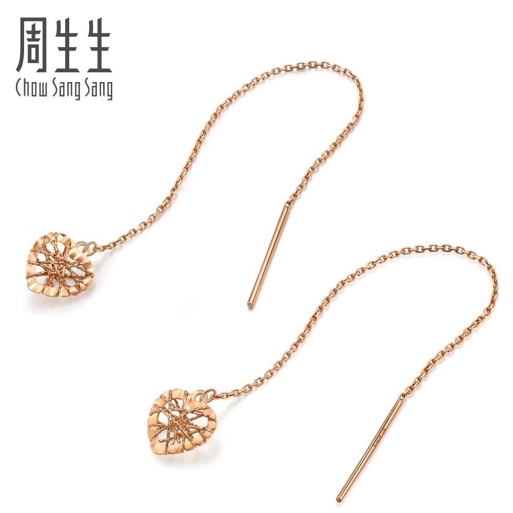 Chow Sang Sang 周生生 Minty Collection 18K Rose Gold Love Heart Earrings 92267E