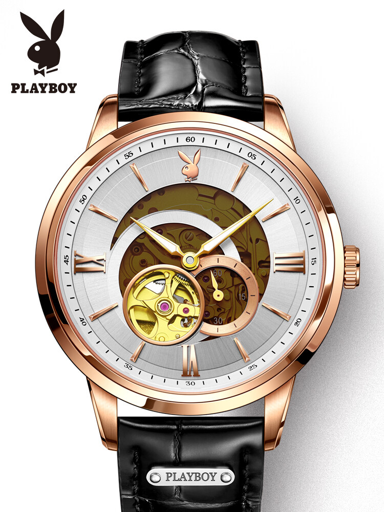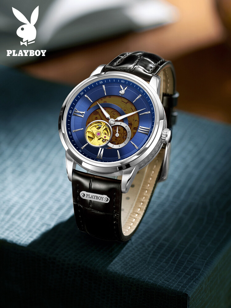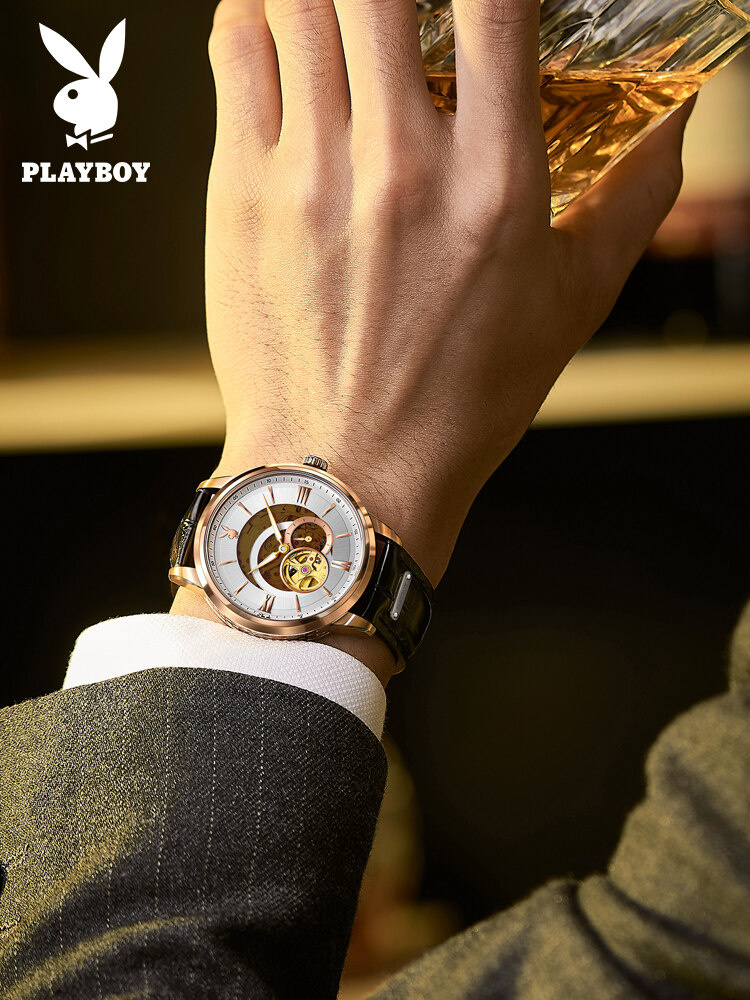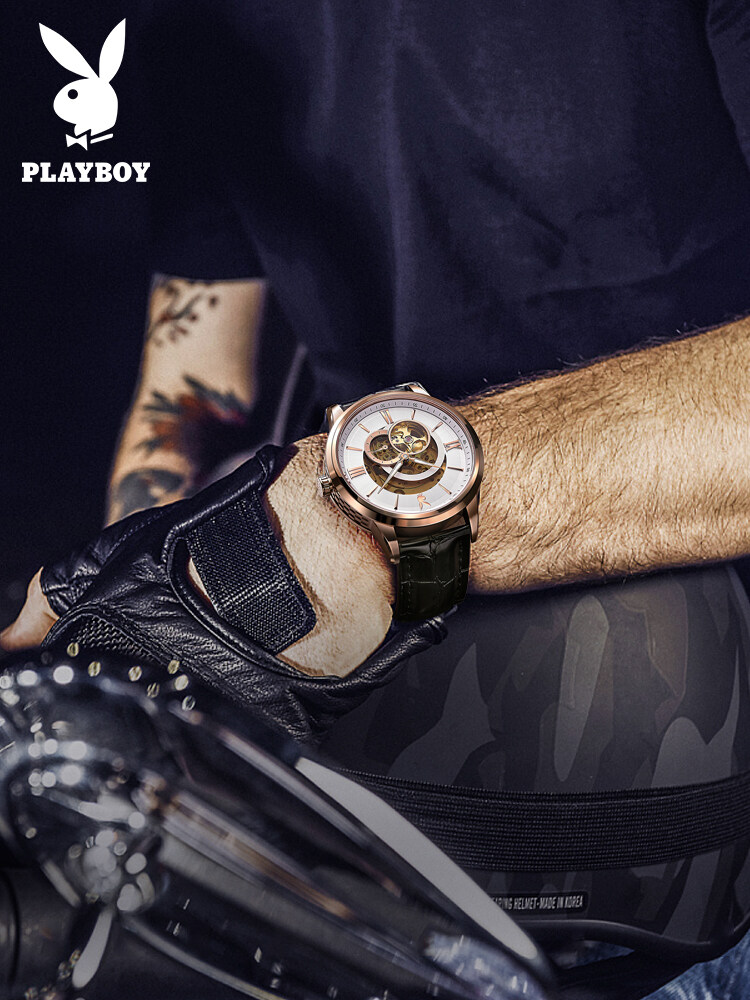 PLAYBOY Import Movement Automatic Mechanical Watch For Men 2021 New USA Brand Fashion Casual Leather Strap Watch Waterproof