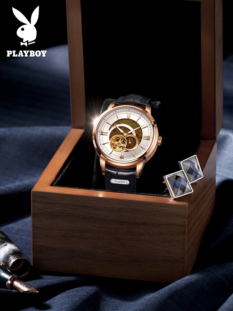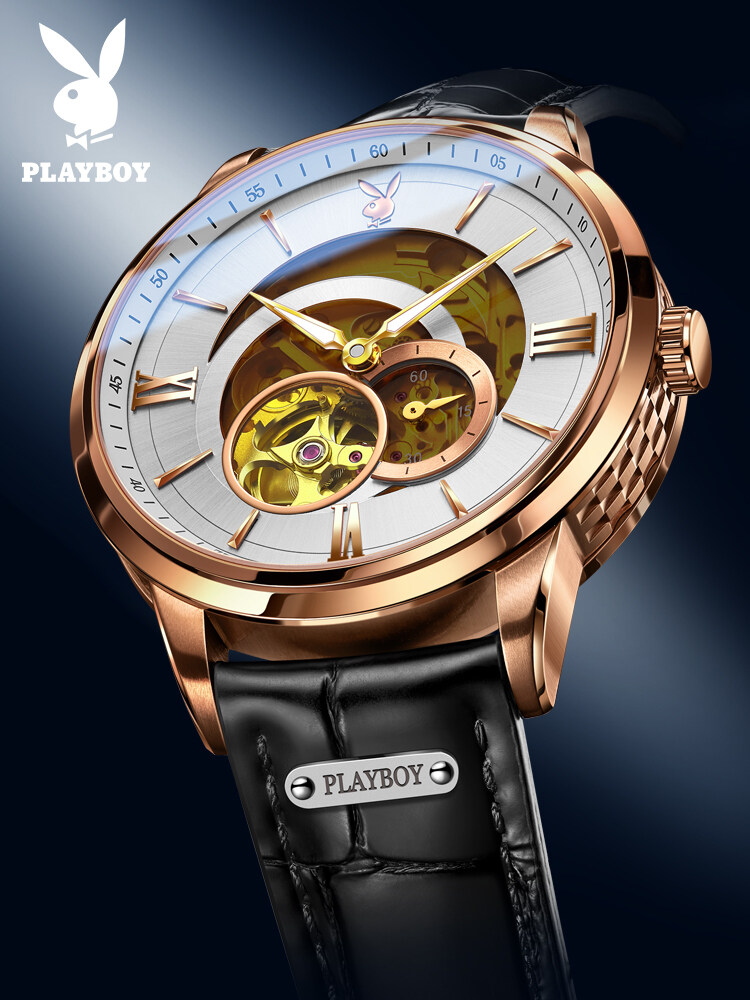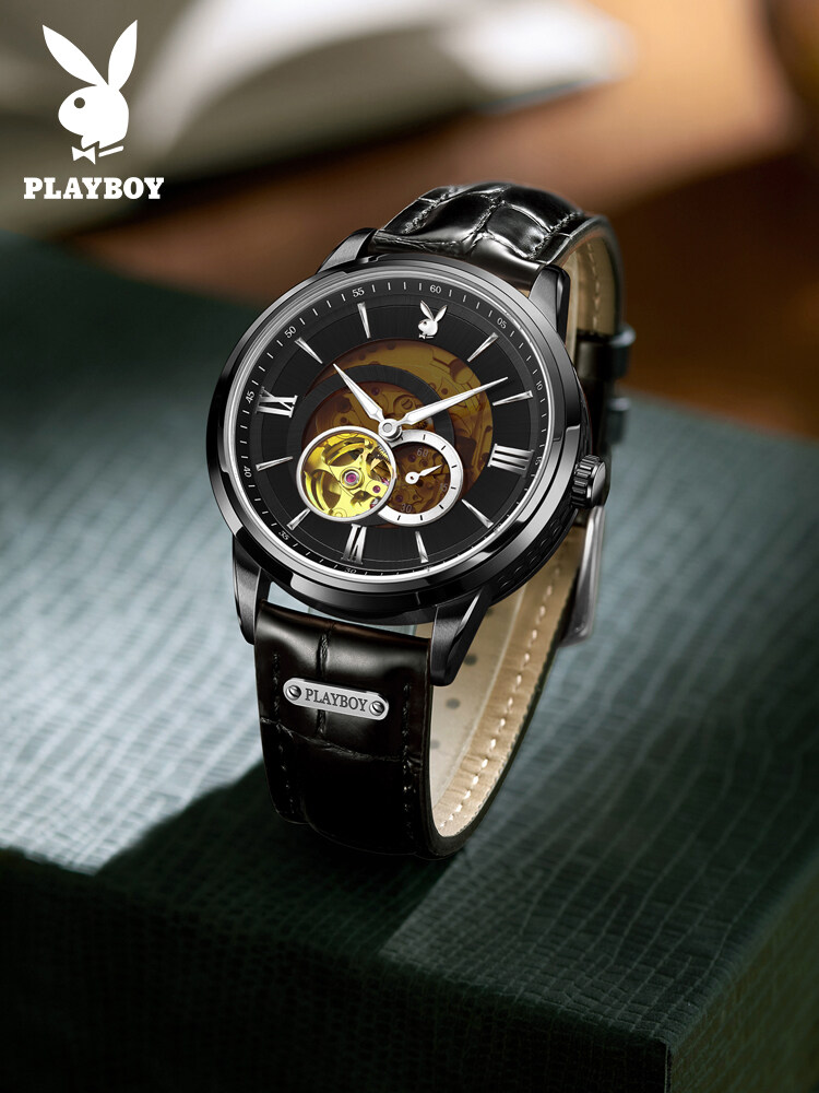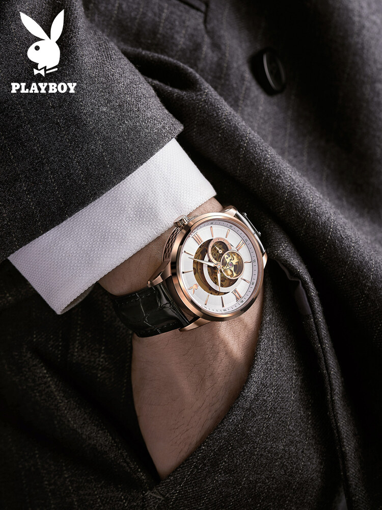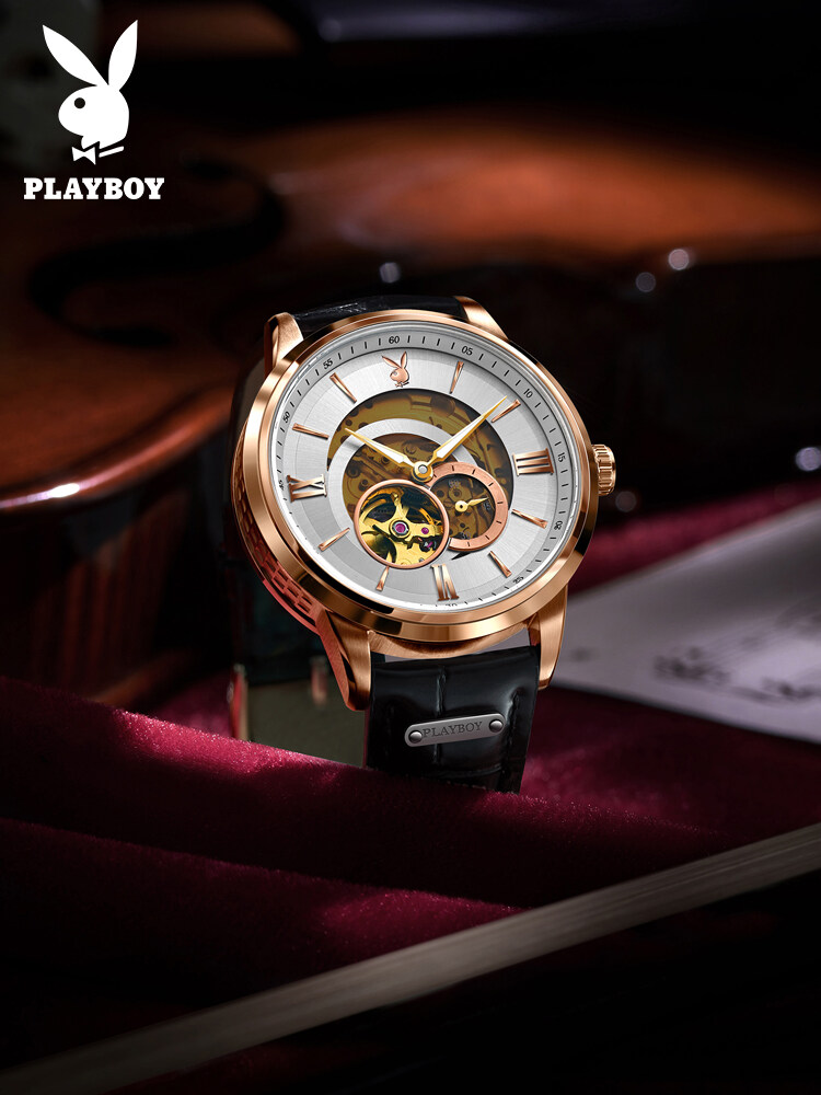 PLAYBOY Import Movement Automatic Mechanical Watch For Men 2021 New USA Brand Fashion Casual Leather Strap Watch Waterproof