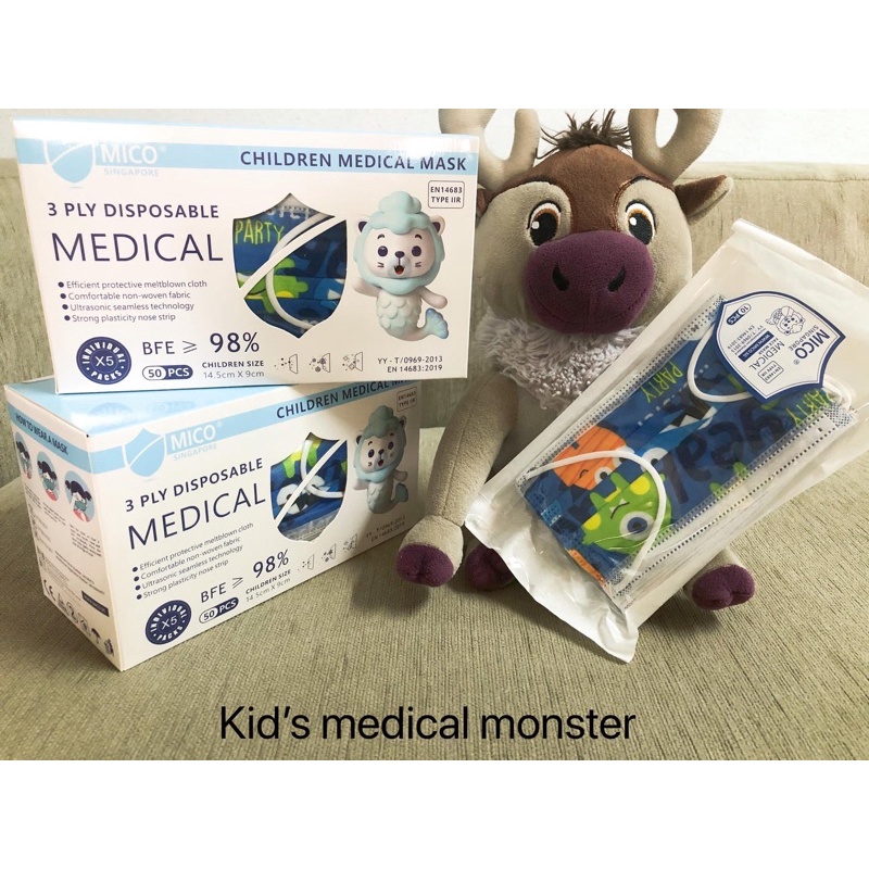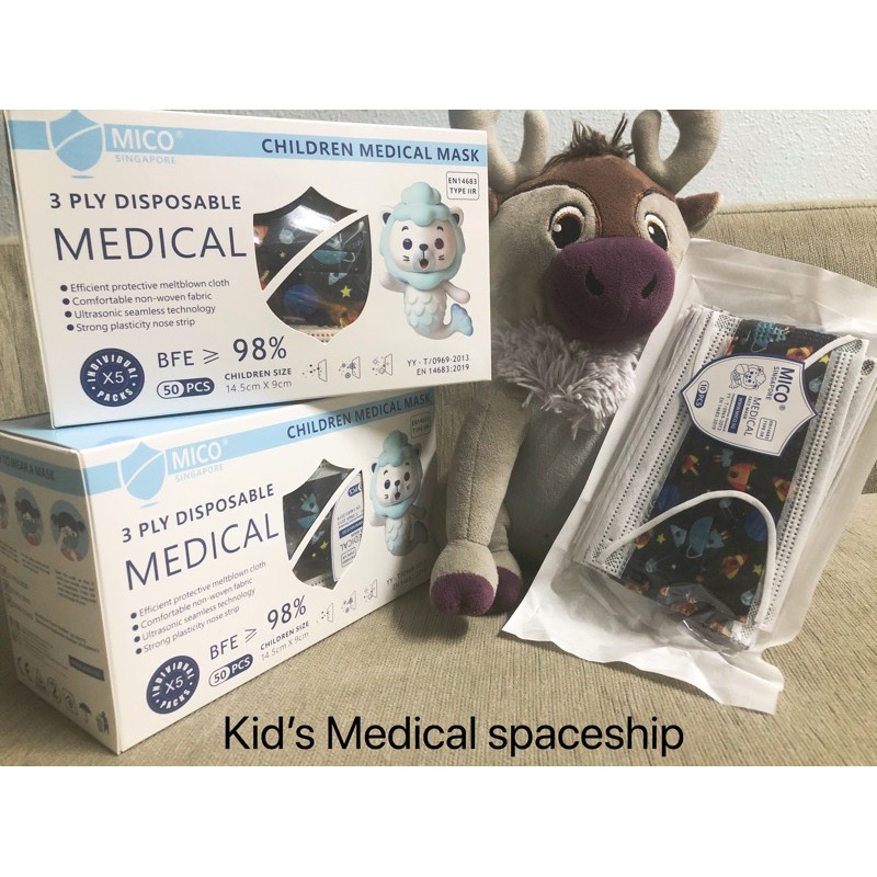 [SG BRAND] MICO Kids Mask 3ply Medical Mask BEF98% Child Disposable Face Mask