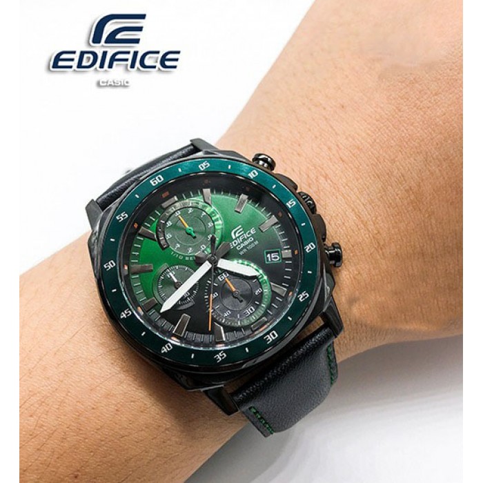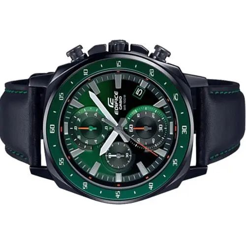 *Original*Casio Edifice EFV-600CL-3A Standard Chronograph Black Leather Strap Watches For Men