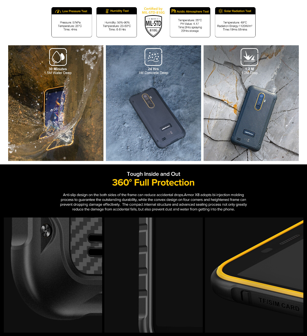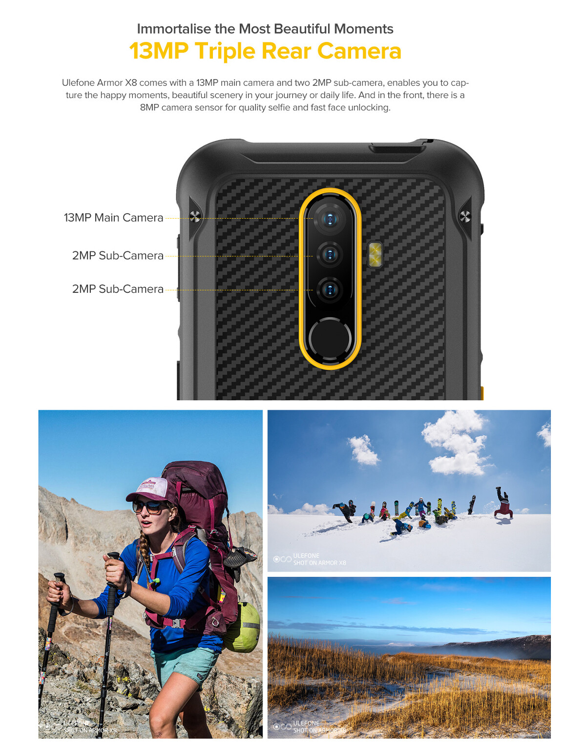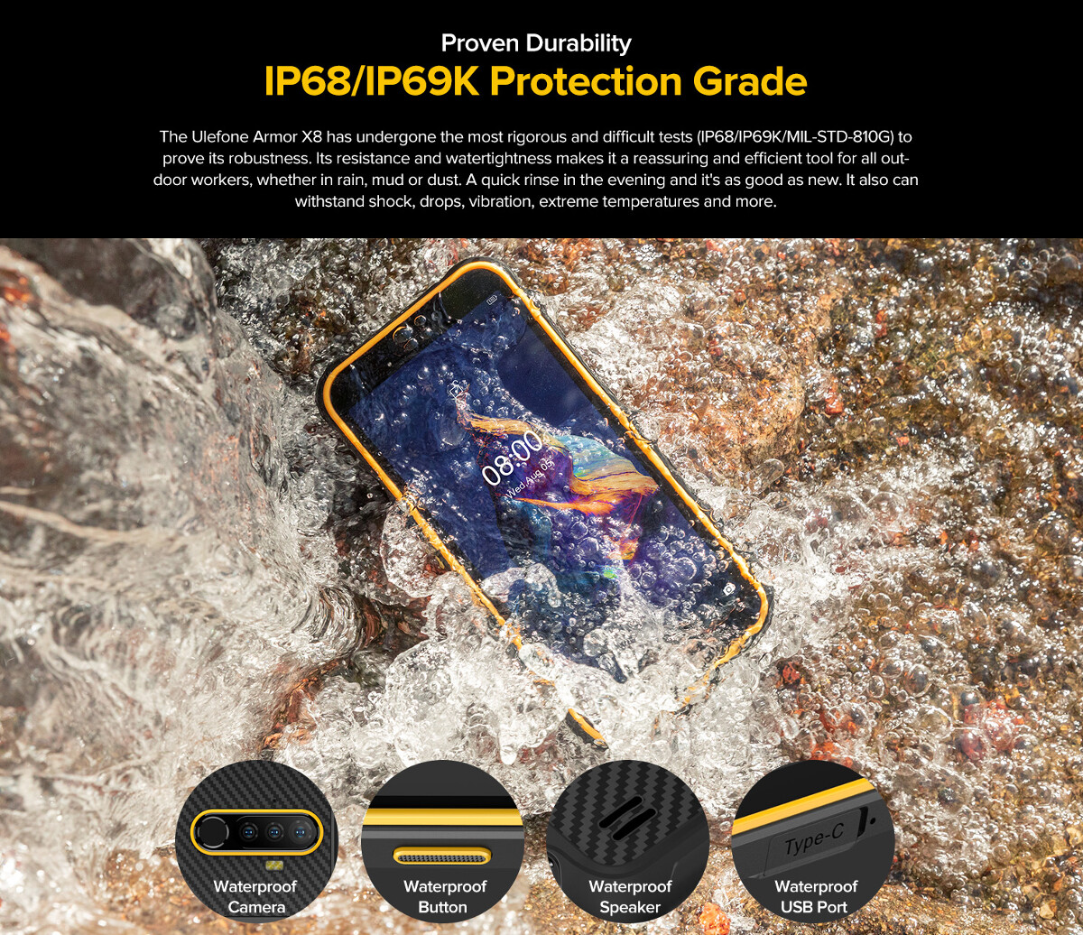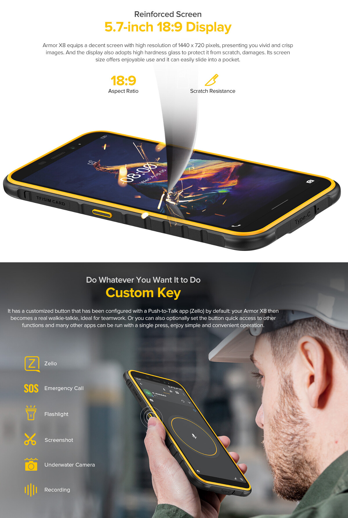 (Official shop)Ulefone Armor X8 IP68 IP69K Waterproof 5.7 inch 4GB 64GB 13MP Triple Rear Camera NFC 5080mAh MT6762 Octa Core 4G Rugged Smartphone
