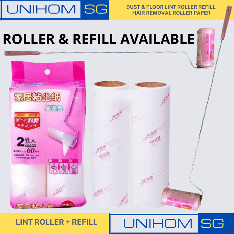 Extra Sheets (60s/90s) Dust & Floor Extra Sticky Lint Roller Refill Long / Short Handle | Hair Removal Bundle Deals 10/16cm