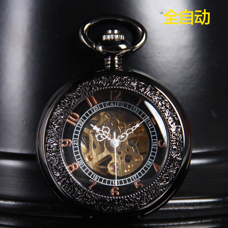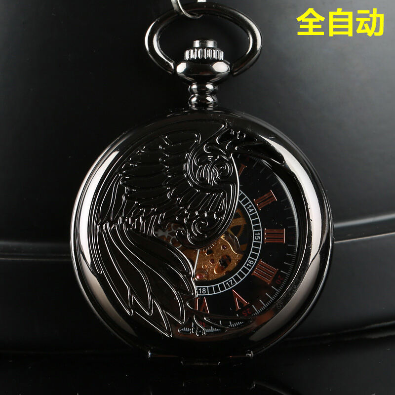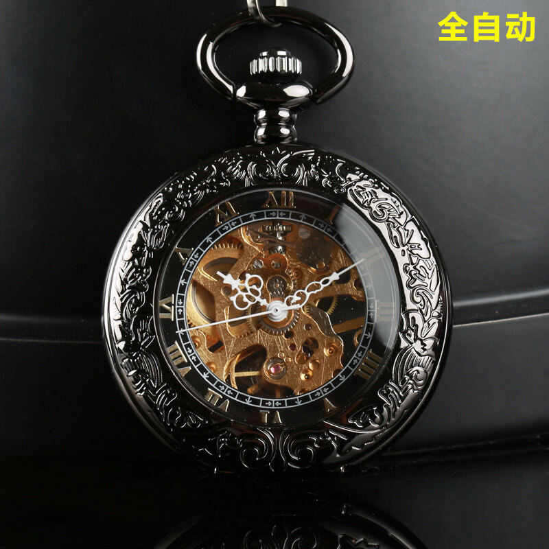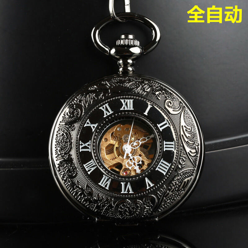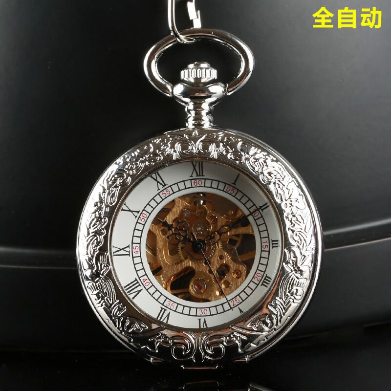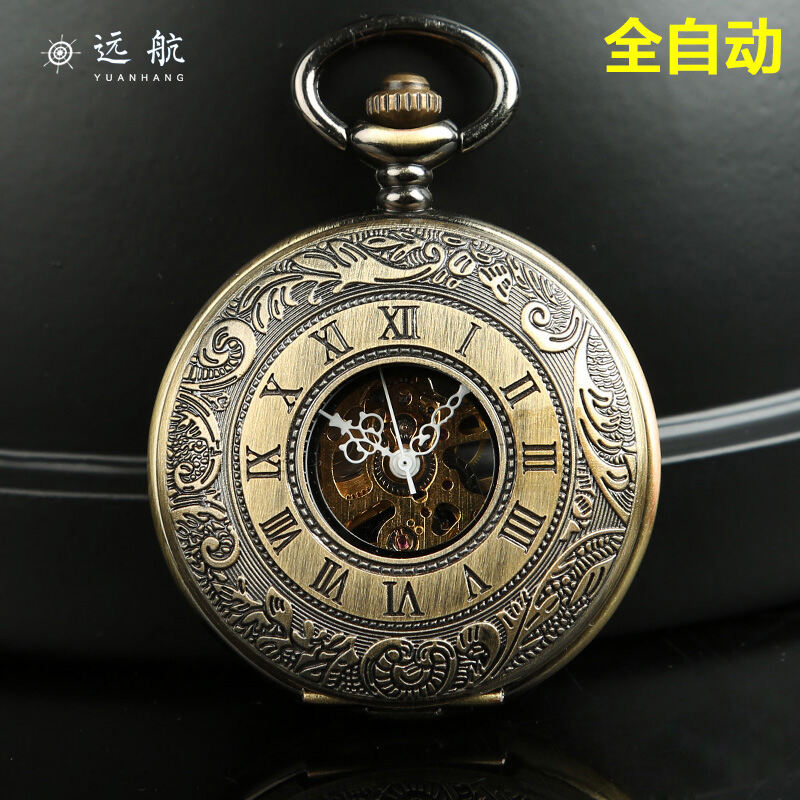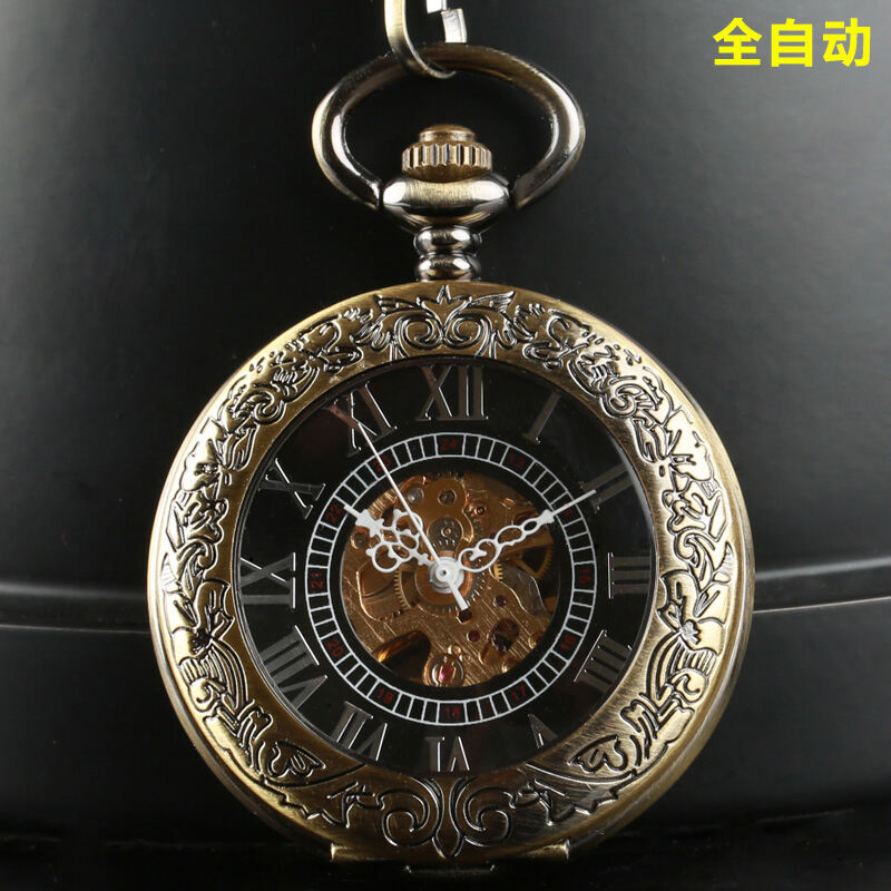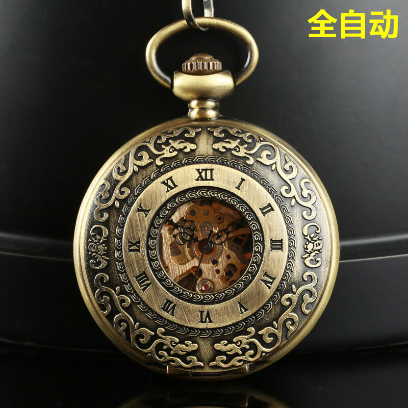 Full-Automatic Mechanical Pocket Watch Retro Flip Men's and Women's Mechanical Pocket Watch Student's Nostalgic Carved Necklace Watch Clockwork Hanging Watch