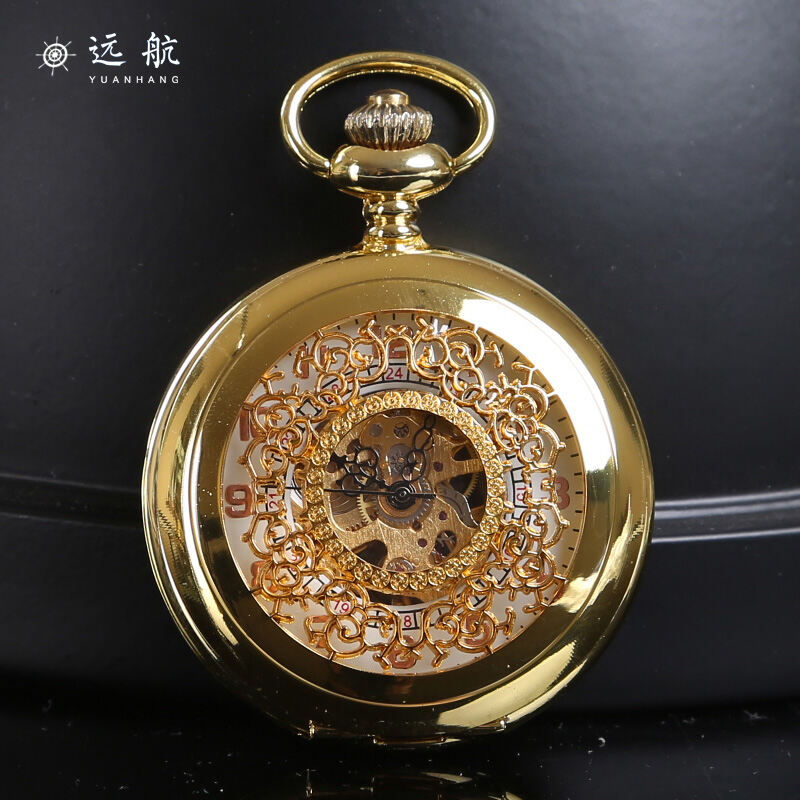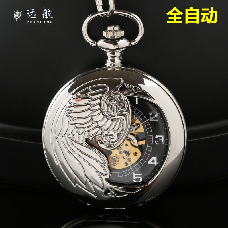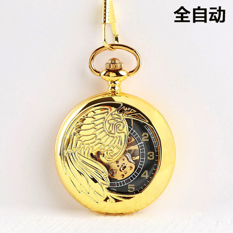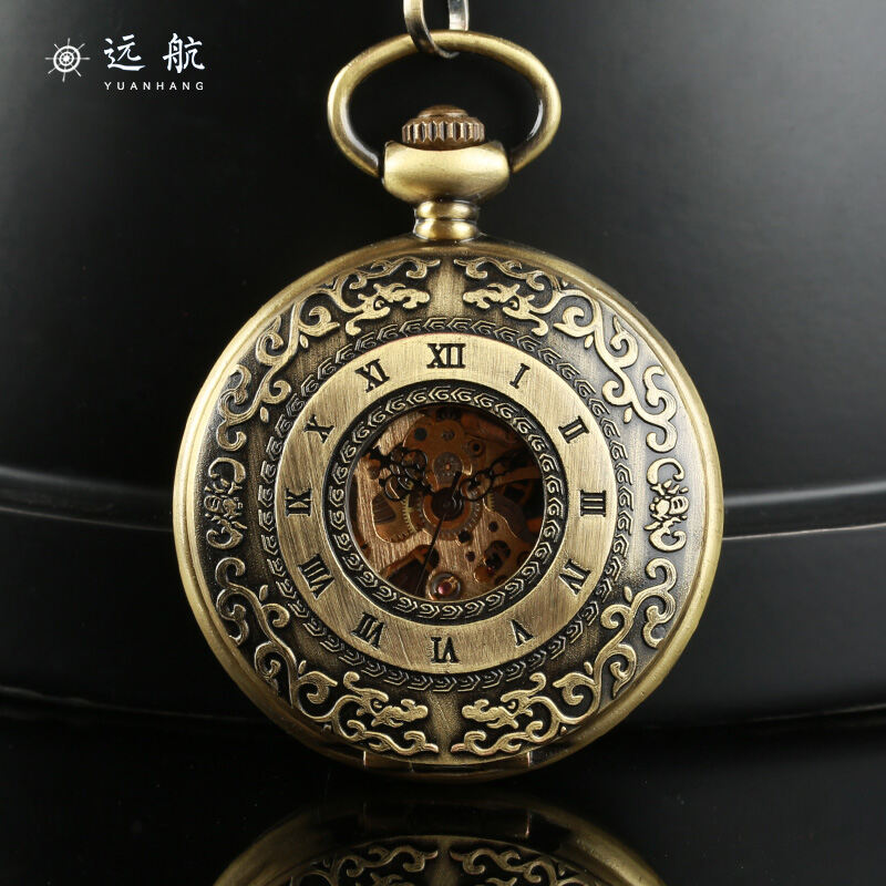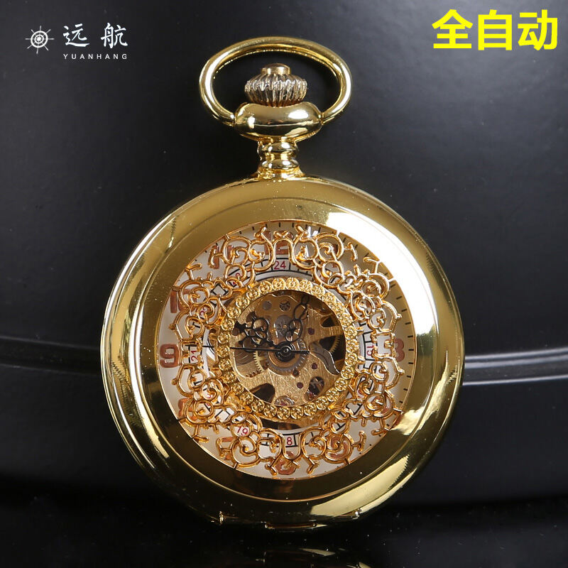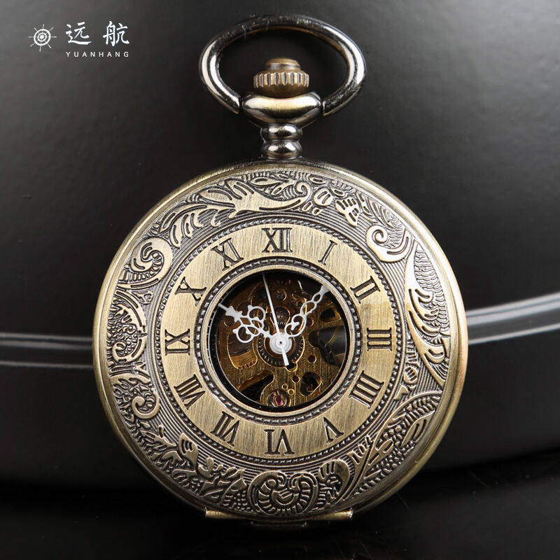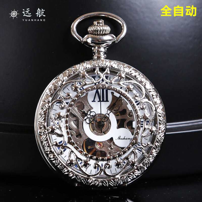 Full-Automatic Mechanical Pocket Watch Retro Flip Men's and Women's Mechanical Pocket Watch Student's Nostalgic Carved Necklace Watch Clockwork Hanging Watch