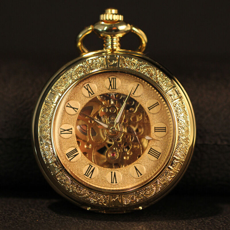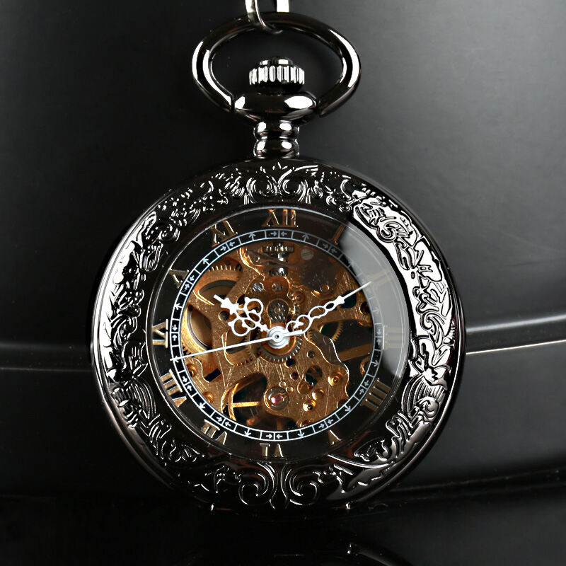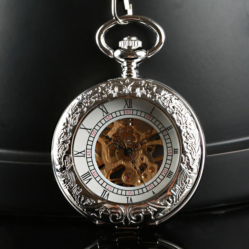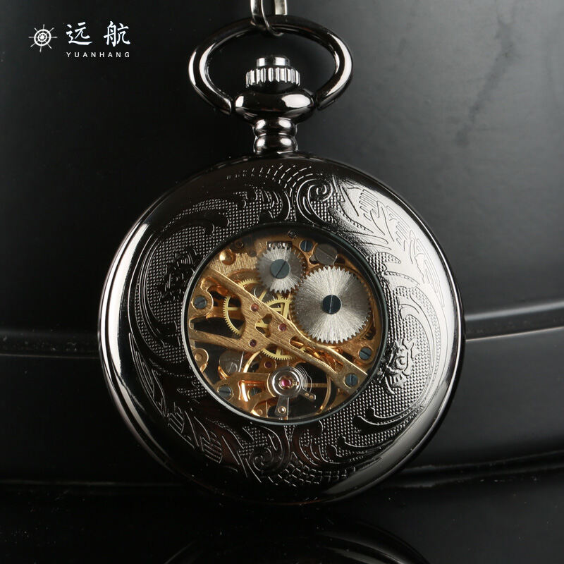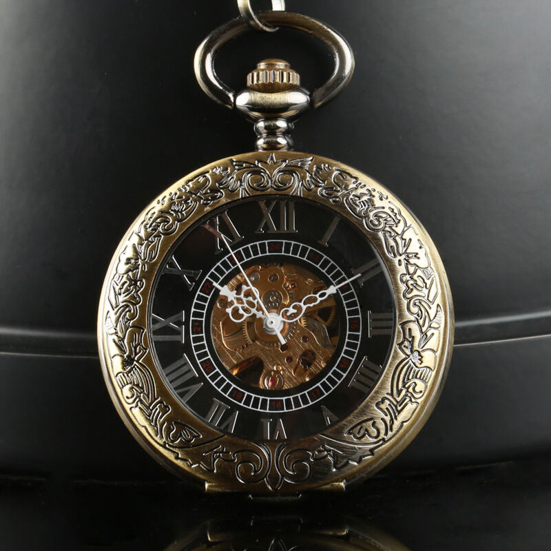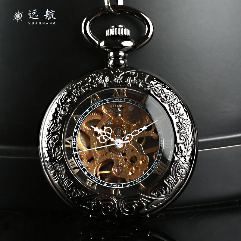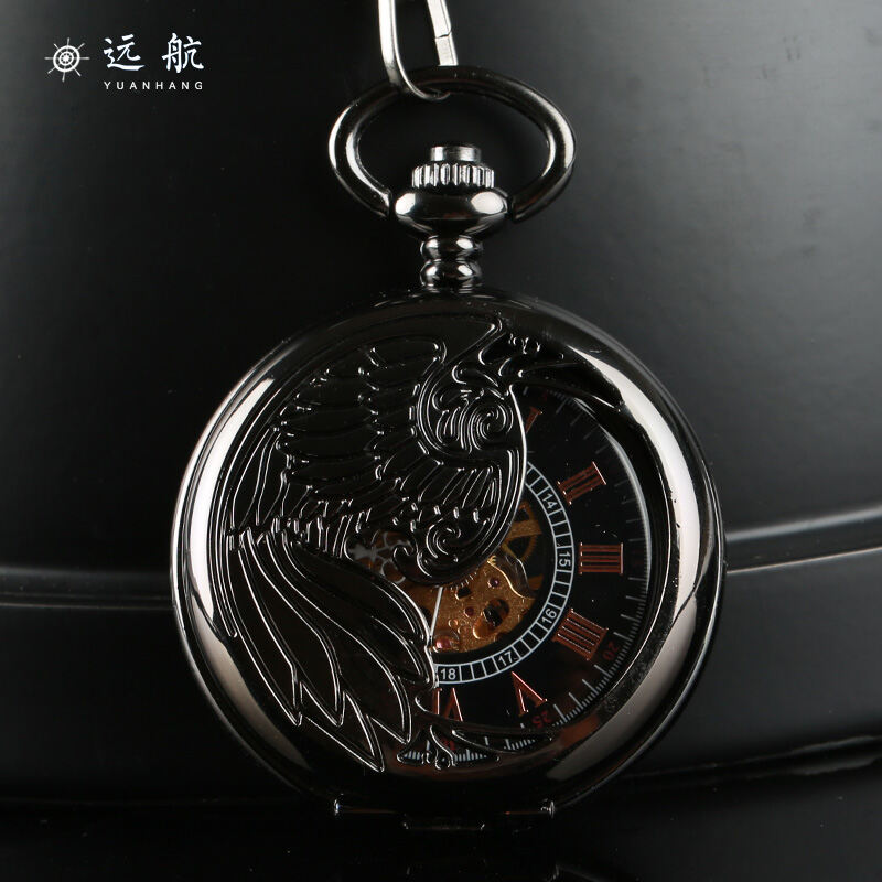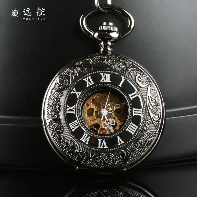 Full-Automatic Mechanical Pocket Watch Retro Flip Men's and Women's Mechanical Pocket Watch Student's Nostalgic Carved Necklace Watch Clockwork Hanging Watch