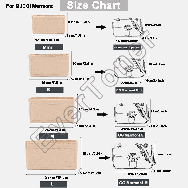 EverToner For Gucci Marmont/Classic Flap Bag Felt Insert Organizer Bag Makeup Handbag Organizer Travel Inner Purse Portable Cosmetic Bags