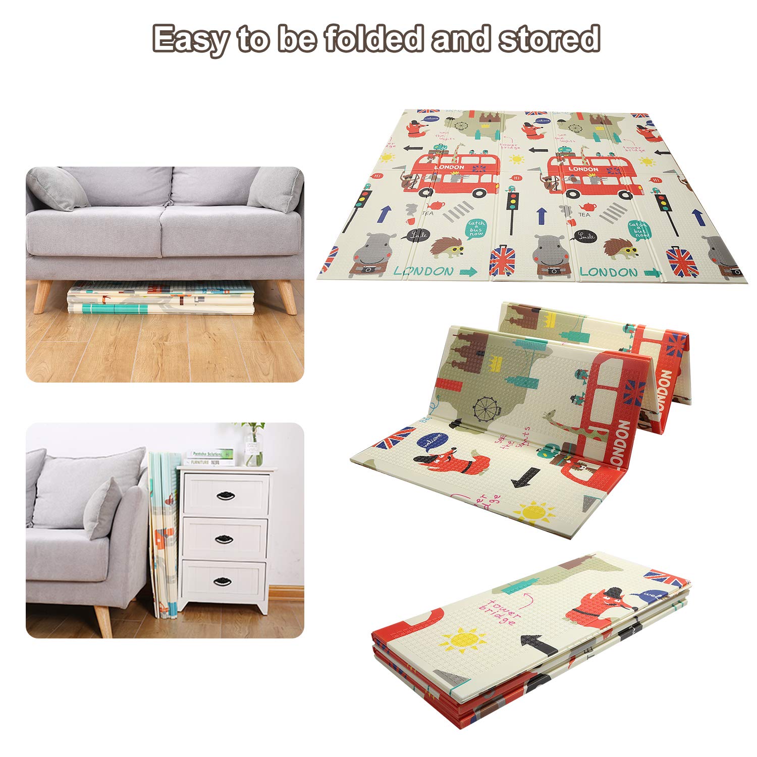 • Superior Quality XPE Material: Our baby play mat is made of BPA free XPE material. The cute patterns on playmat are printed with vegetable oil ink. The product is characterized by the following features; BPA free, non-toxic, no-fading, no chemical odor, comfortable and safe for baby crawling. This is a toddler-friendly mat that guarantees the safety of your baby.