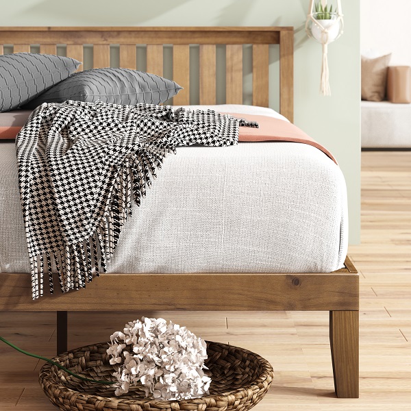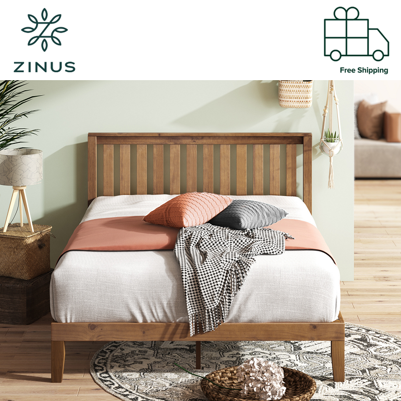 Zinus Wood Platform Bed (Rustic Pine Finish)- Single, Super Single, Queen