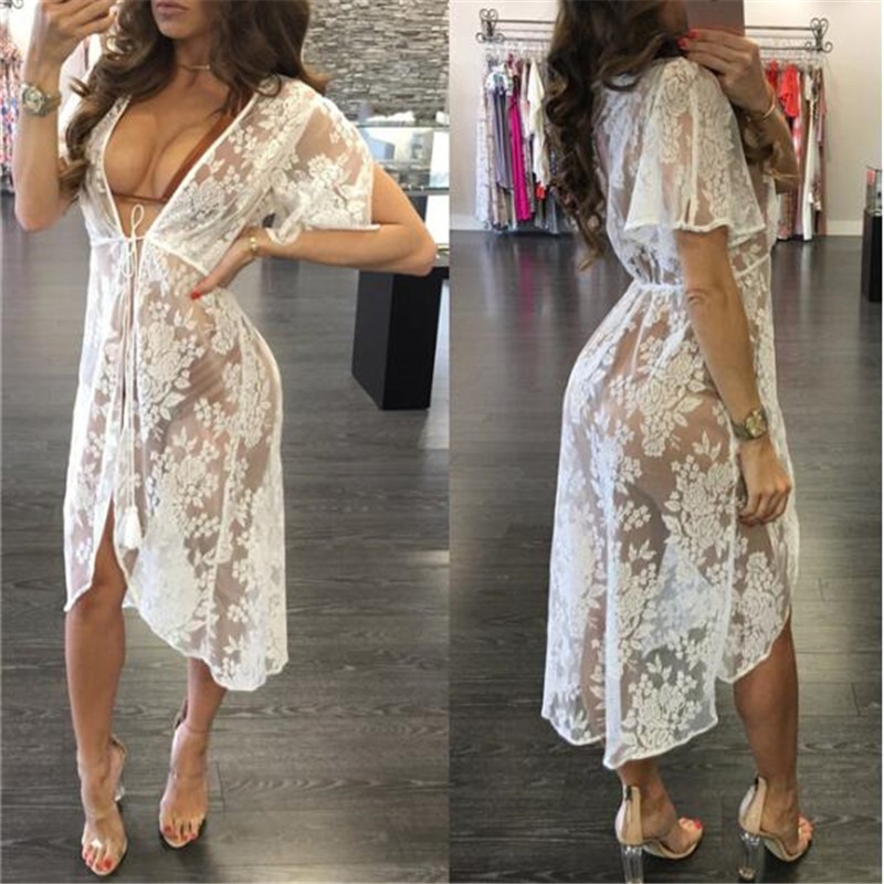 Fashion model shop Women Lace Crochet Bikini Cover Up Swimwear Bathing Suit Summer Beach Dress