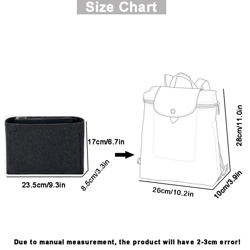 Features: NEW MATERIAL : Felt Purse Organizer with High quality and New Materials are made of Sturdy ,Soft and pliable, Lightweight Felt fabric. Lightweight and sturdy, soft and durable. Portable and compact, easily held in the bag, easily lifted out with the cuffs, save your time to switch to another bag. Fits for Le Pliage Backpack, keep your handbag look beautiful and in order, it is easy to change purses and bags throughout the day without having to rearrange. Multi pocket organizer pockets, easy organizers your cosmetics, smartphone, glasses, travel items etc.