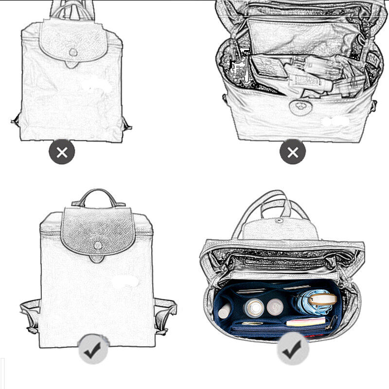 EverToner For Longchamp Le Pliage Backpack Felt Cloth Insert Bag Organizer Makeup Handbag Organizer Travel Inner Purse Portable Cosmetic Bag