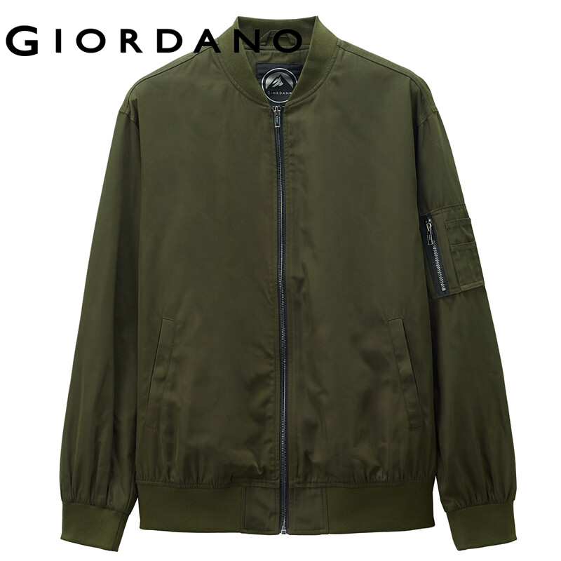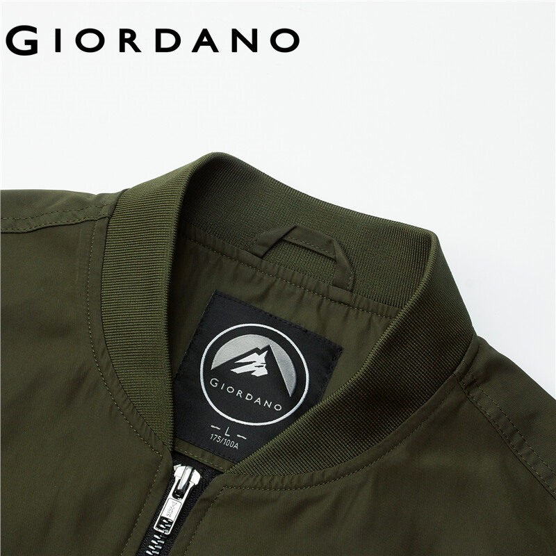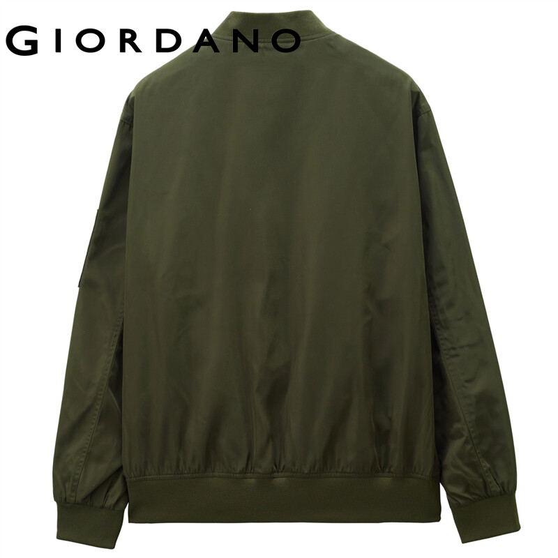 GIORDANO Men Bomber Jackets Zip Front Stand Collar Solid Color Bomber Jackets Ribbed Cuffs Multi-Pocket Casual Jackets 01071086