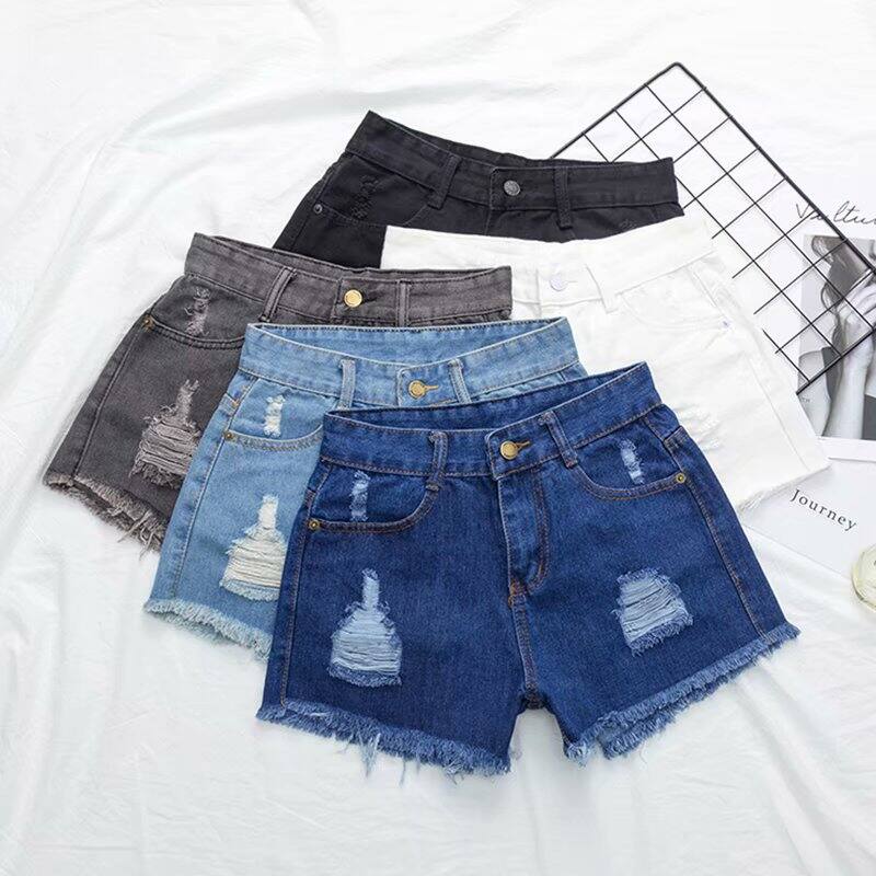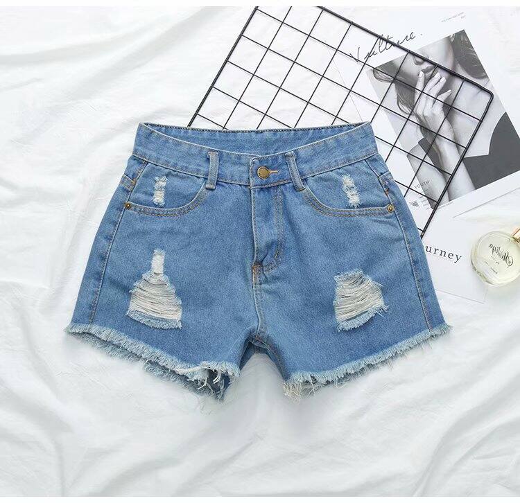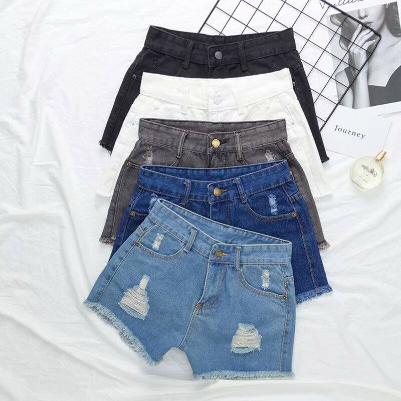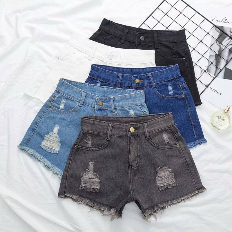Large Size Women's Clothing Fat Mm200 kg Outer Shorts Korean Style High Waist Slimming A- line Wide Leg Ripped Black Versatile Hot Pants
