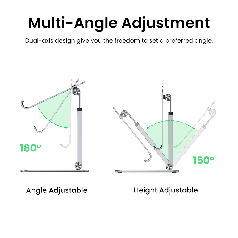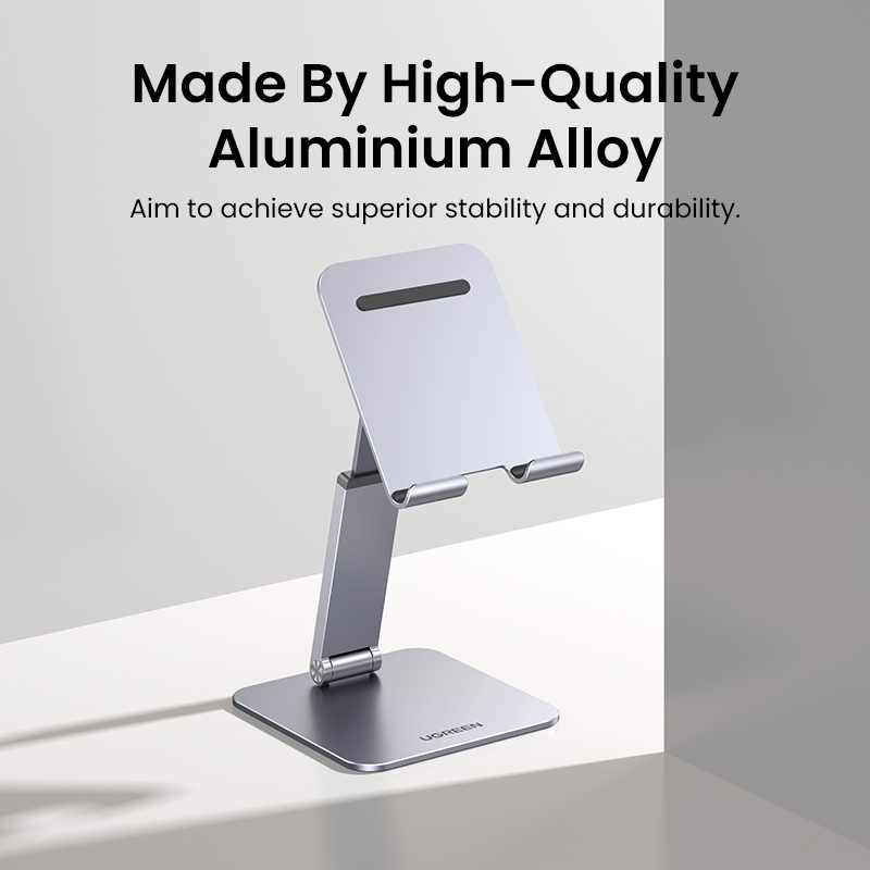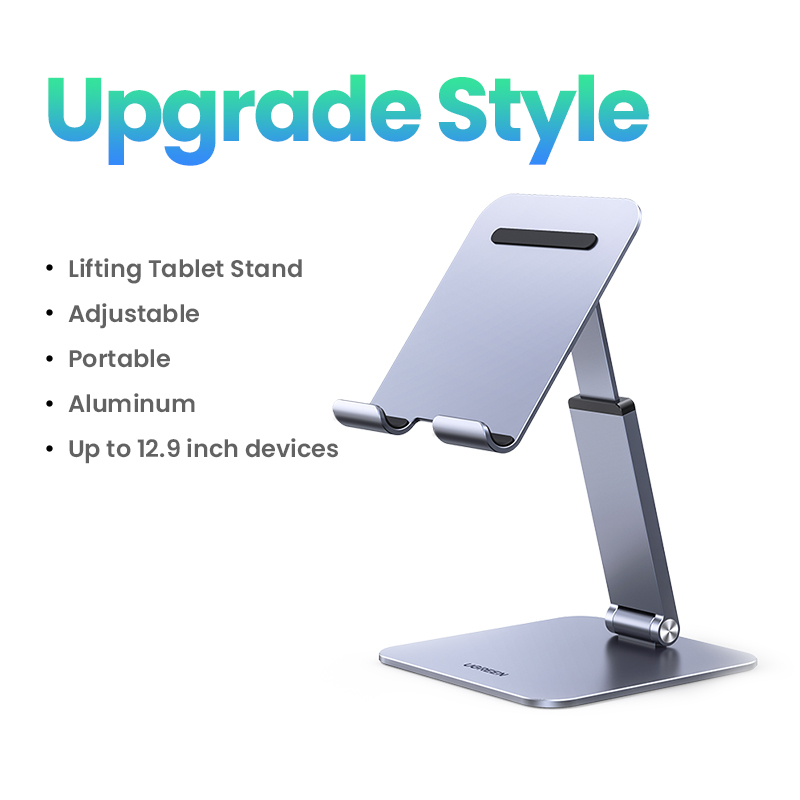 UGREEN Tablet Stand Holder Adjustable Aluminum Portable Stand Holder for Desk Foldable Dock Heavy Duty Metal Base Compatible with ipad pro 12.9, 9.7, 10.5, ipad air Mini 4 3 2, Nintendo Switch Grey