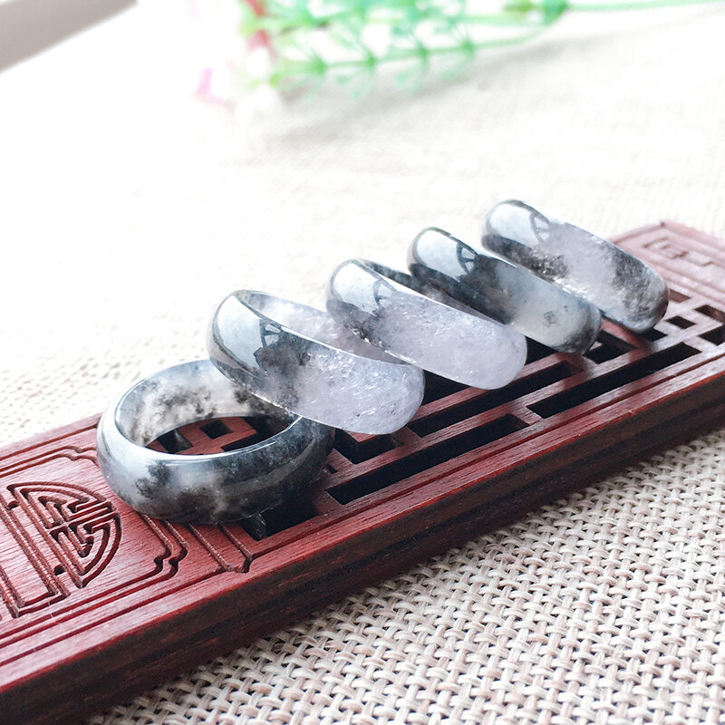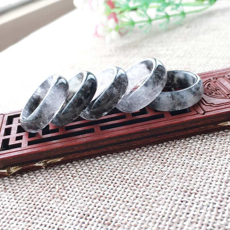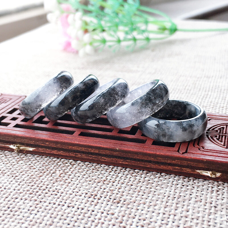 Myanmar a Goods Black Chicken Jade Ring Natural Jade Mine Timber Ice Black Flower Ring Women Special Water Grass Jade Ring for Men