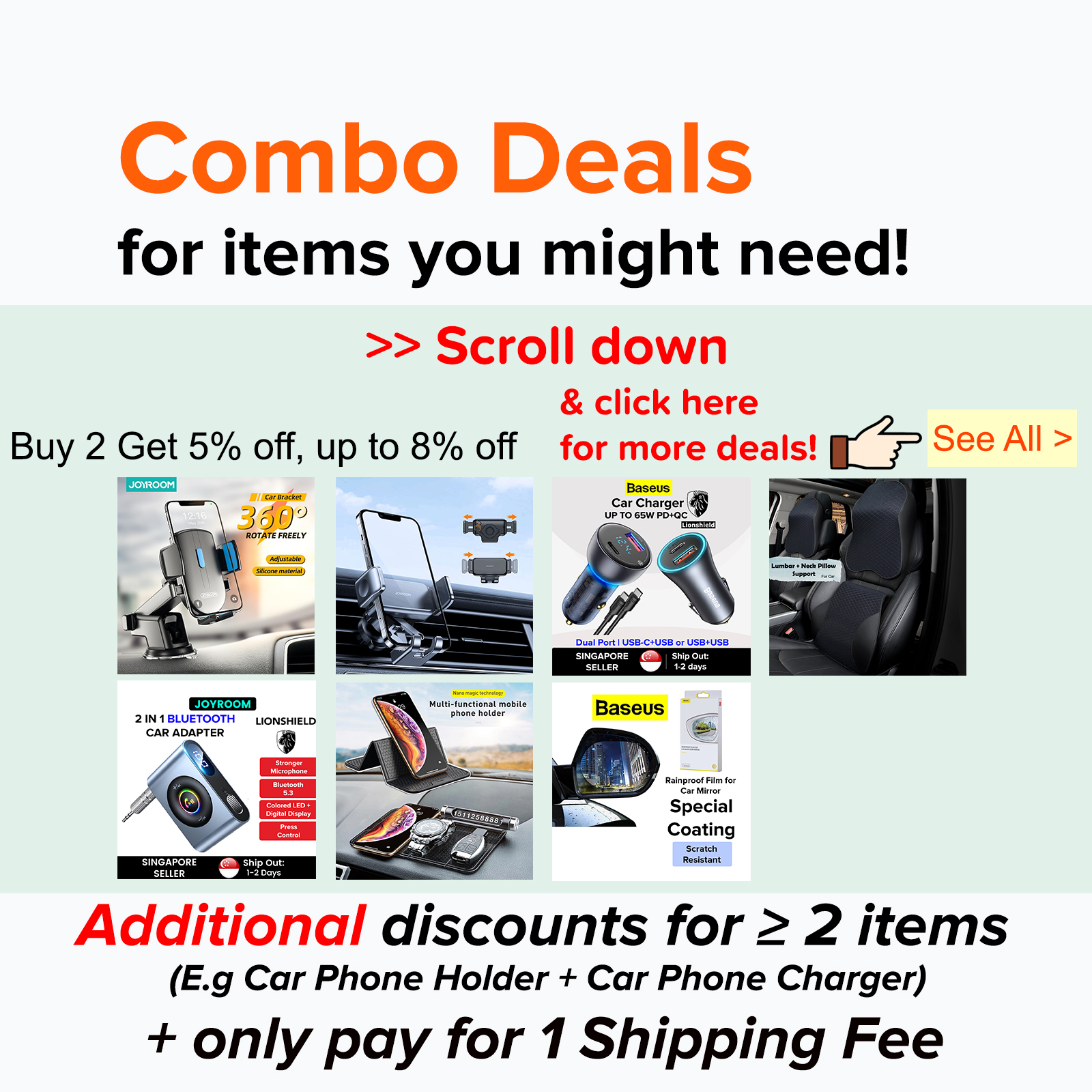 (SG) Joyroom 360° Car Phone Holder for Dashboard/Windscreen/Curved Dashboard - Adjustable Bracket mount with Suction Cup