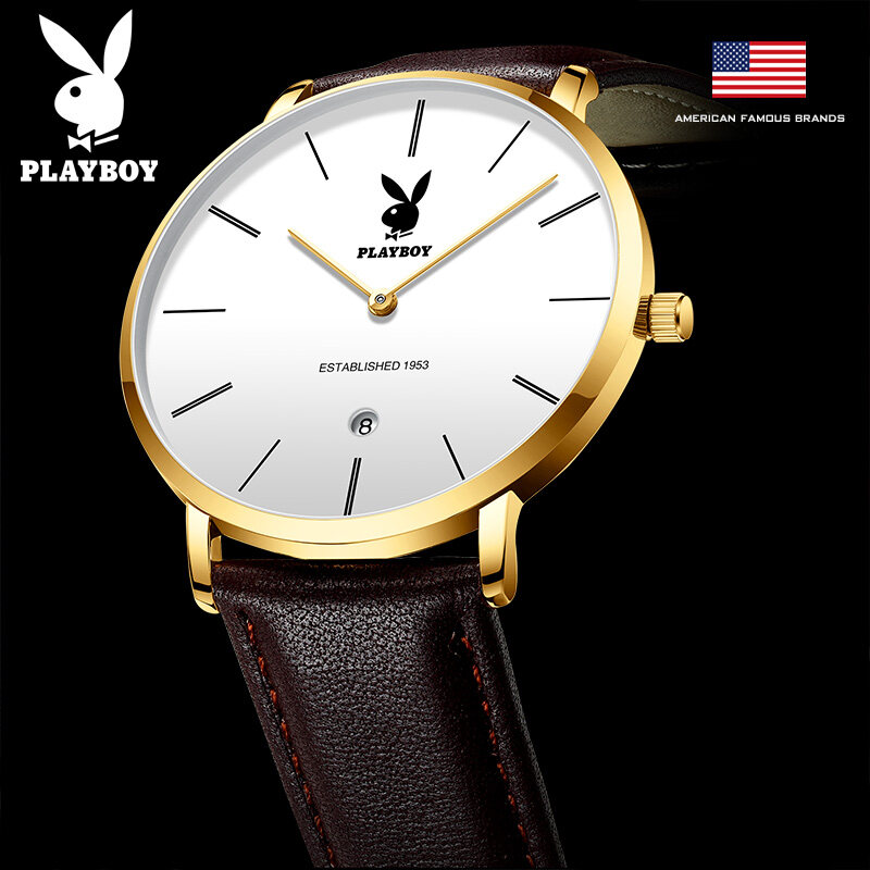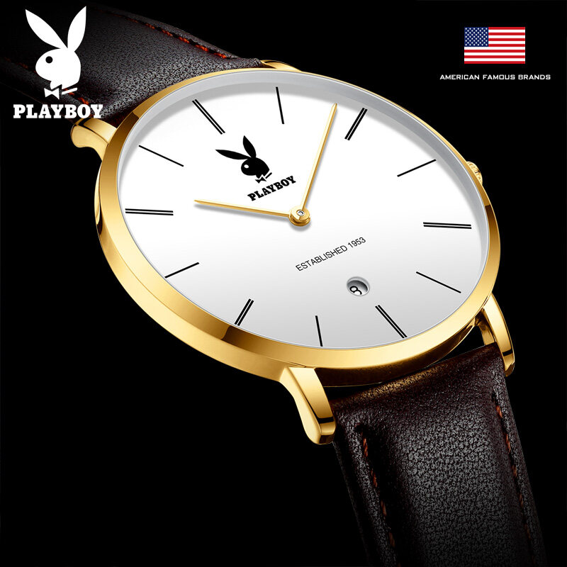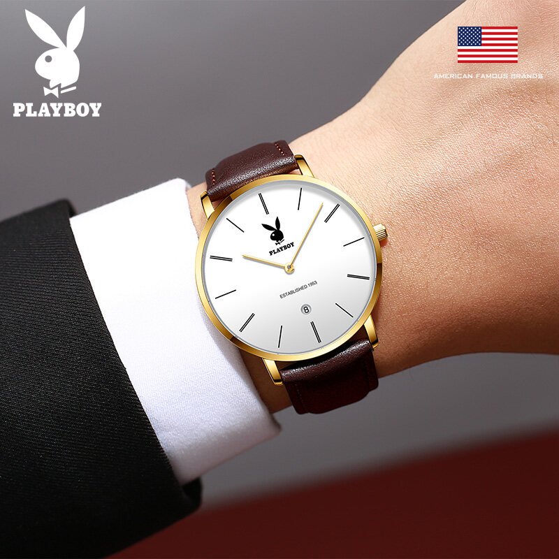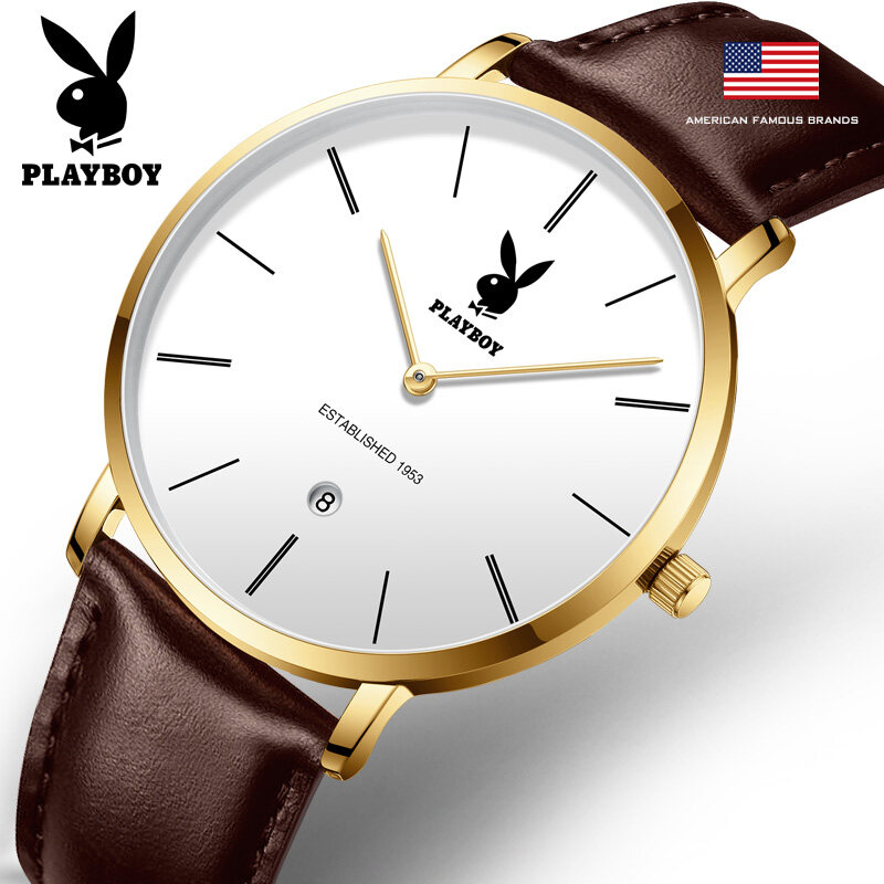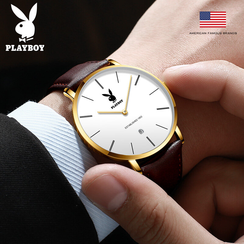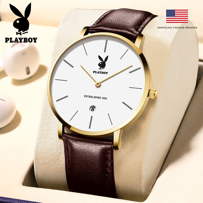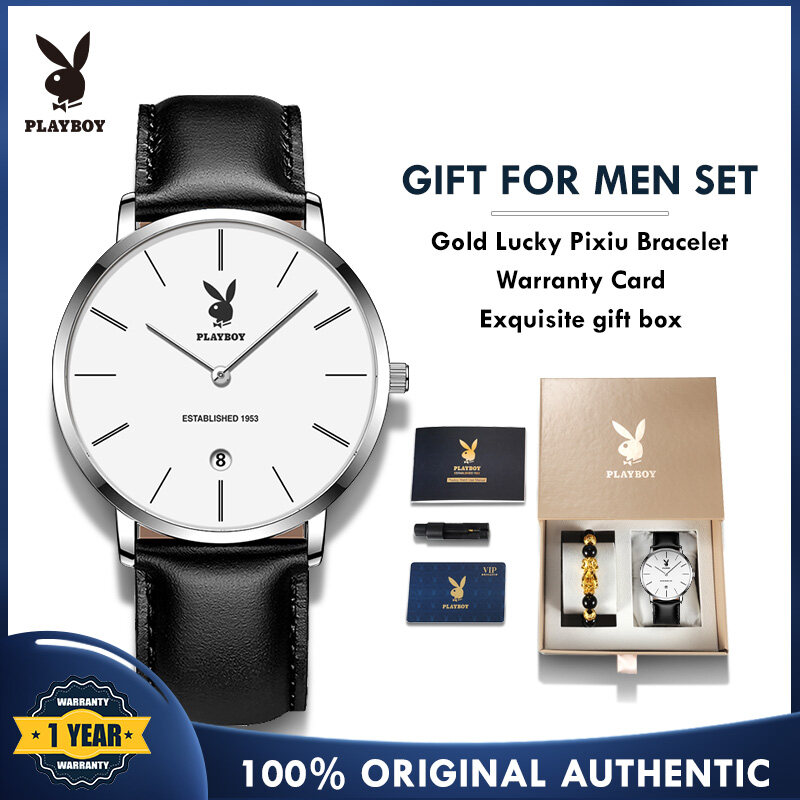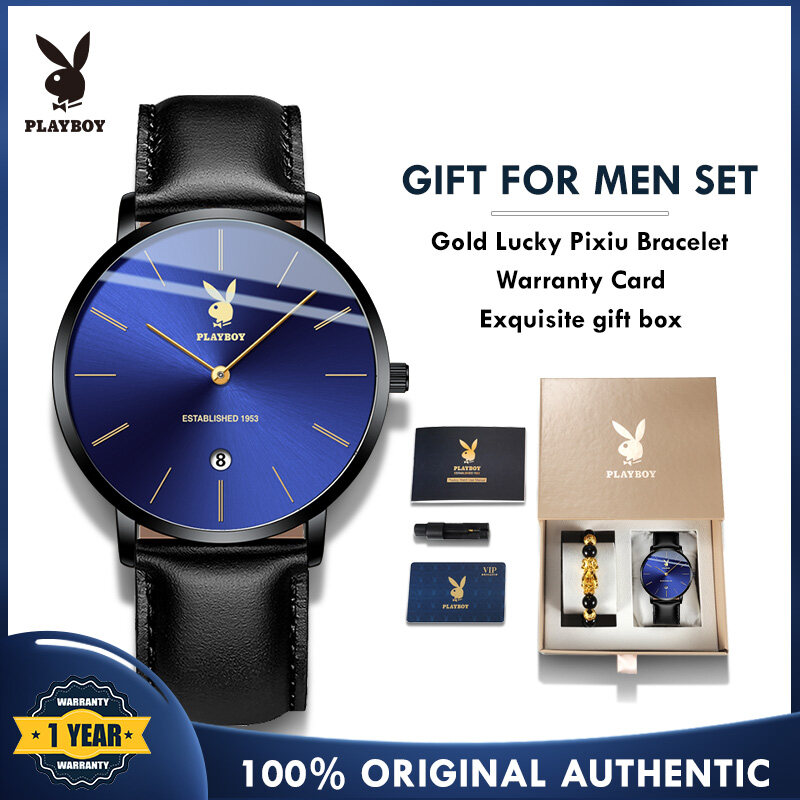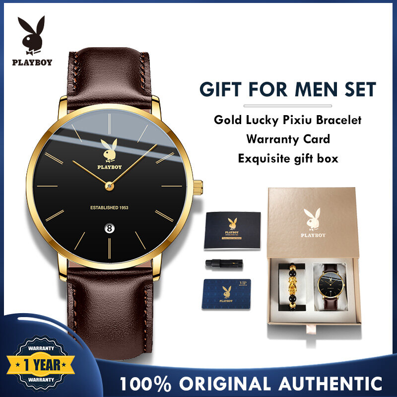 PLAYBOY top watch for men set original 2022 waterproof Japan imported quartz movement genuine leather strap gift for men set with box bracelet