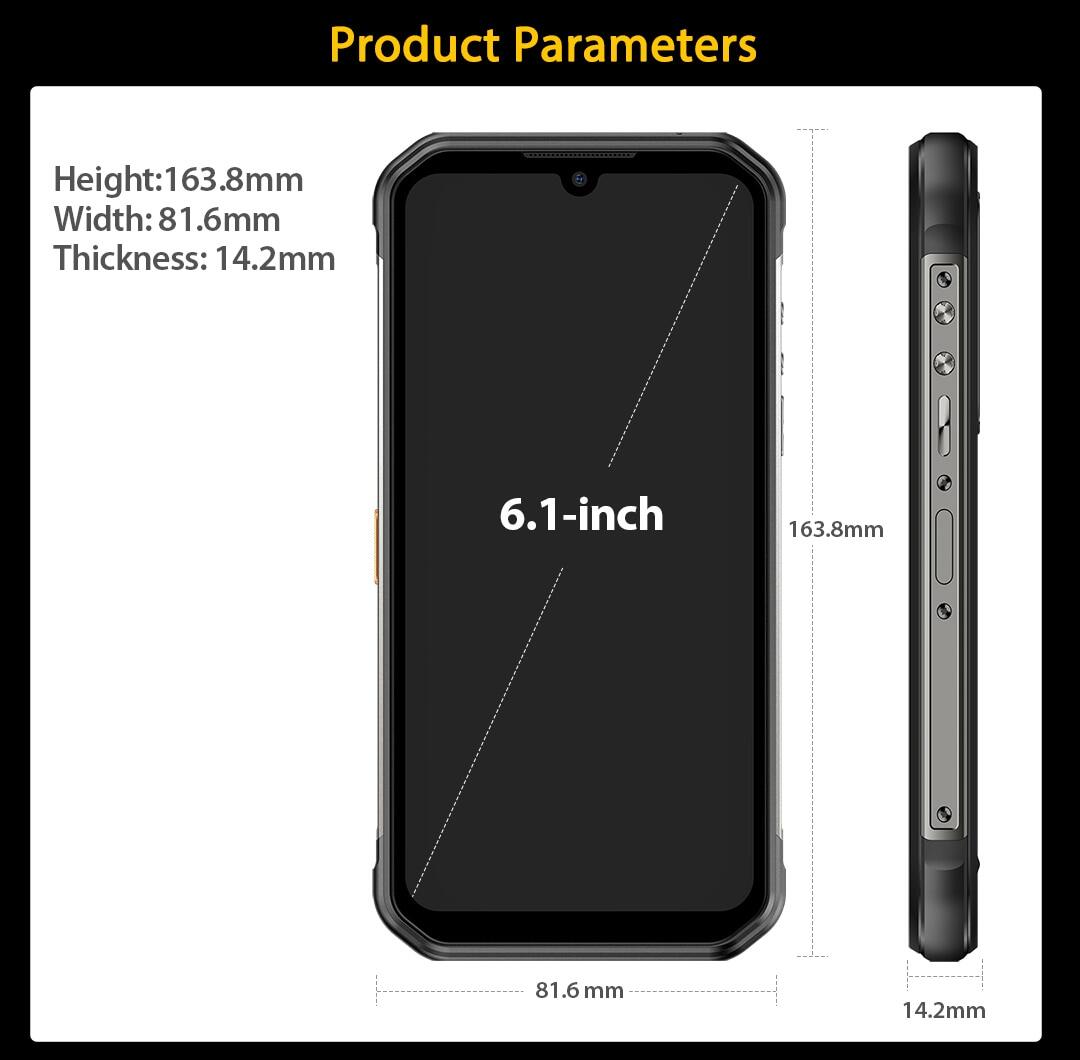 Features 1. MTK MT6873 Dimensity 800 octa core 2.0GHz CPU, good performance, run fast and operate smoothly. 2. 6.1 inch 1560 x 720 pixel, high clear, vivid colors, good for watching video, playing games. 3. 360 degree all round protection, it is rugged and durable to use. 4. IP68/IP69K level waterproof dustproof shockproof, it can be used in wide usage scenarios and applications. 5. Powered by 5200mAh high capacity battery, long life to use. 6. 48MP (FOV 79 degree, F/1.79)+5MP(FOV 76 degree, F/2.2, secondary camera for the FLIR thermal imaging function)+2MP macro lens(FOV 79 degree, F/2.4) + 2MP sub-camera 4 rear cameras, capture wonderful moments, take sharp and clear pictures.