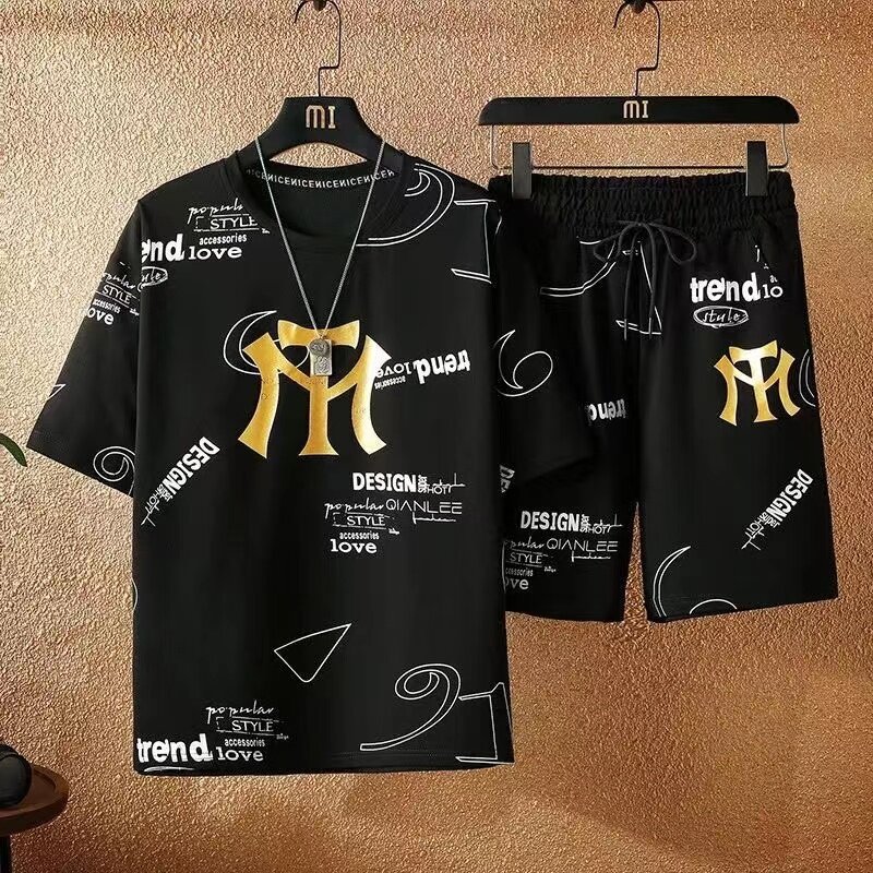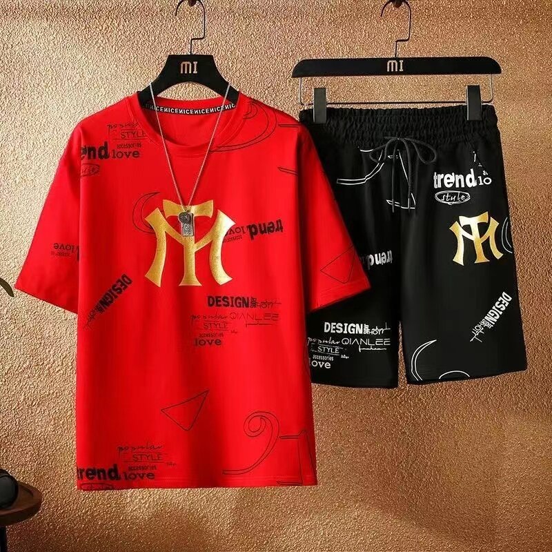 Men's Short Sleeve T-Shirt Suit 2022 Fashion Summer Trend Loose Handsome High Quality Fashion Cartoon Suit Set