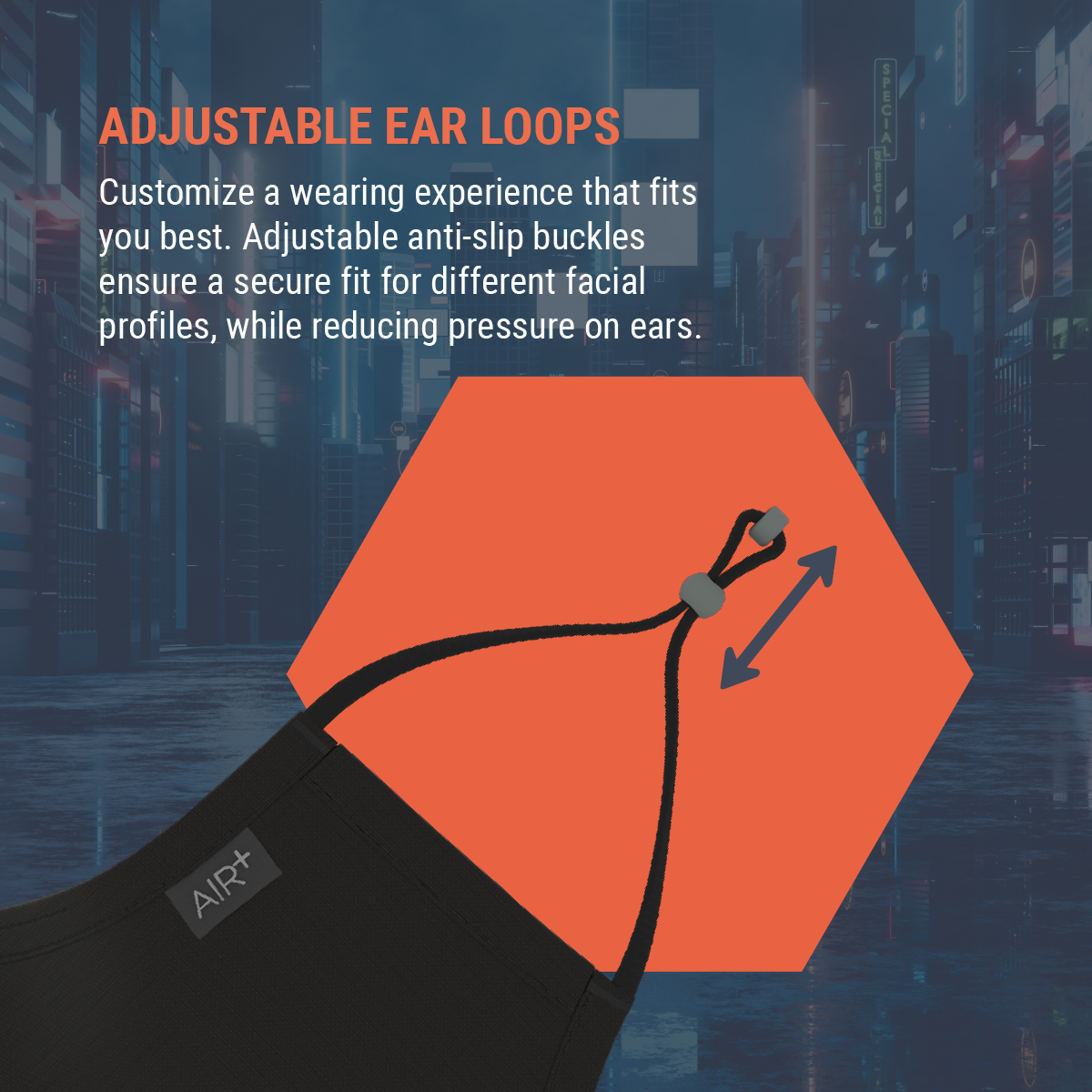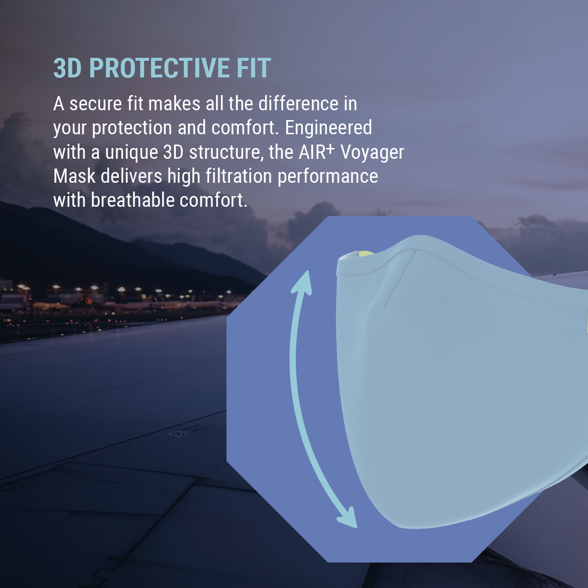 AIR⁺ Voyager | Reusable Mask | M & L Sizes | 1PC | Washable | Anti-Microbial | Water-Repellent | Adjustable Ear Loops