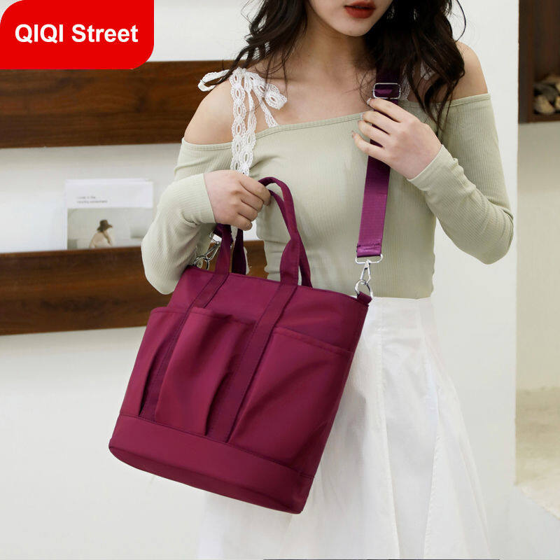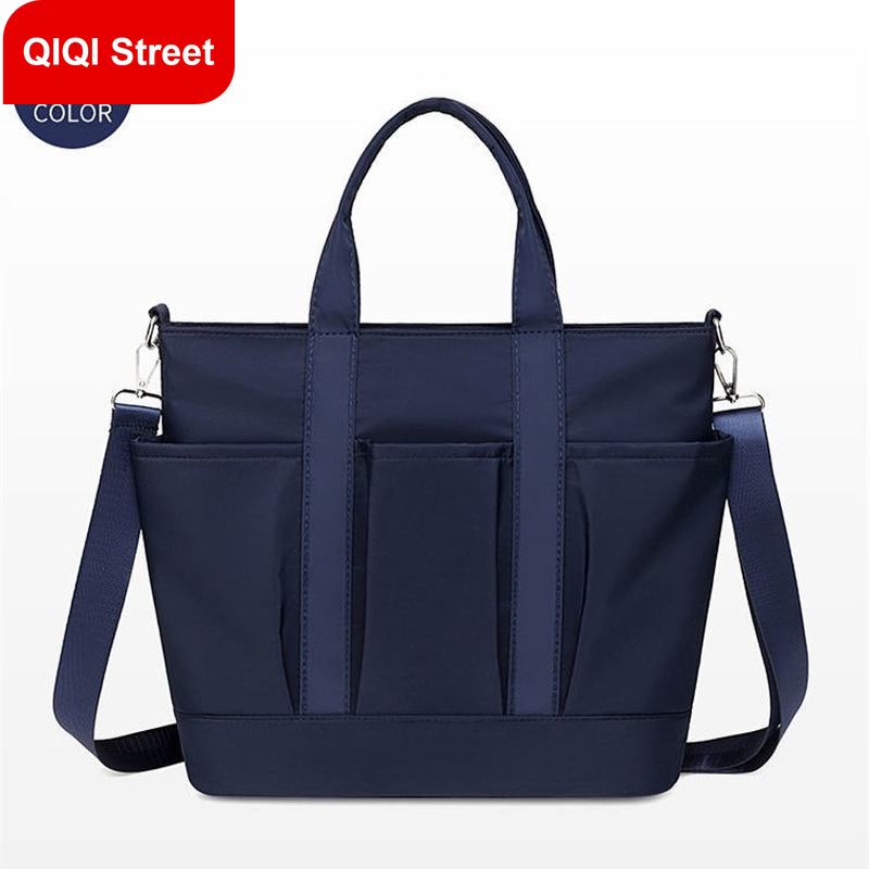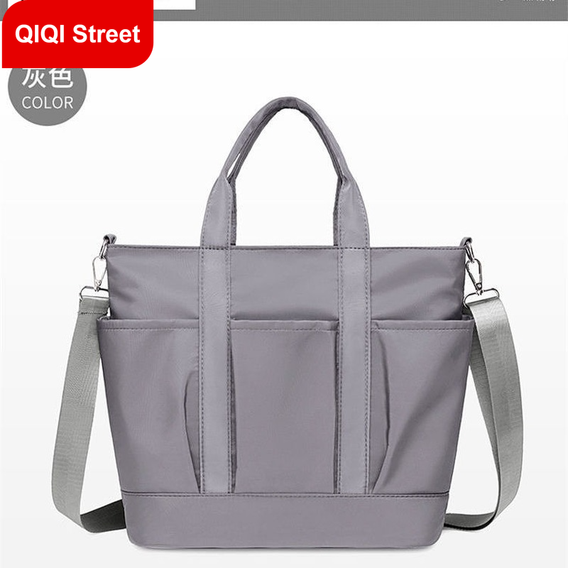 nylon cloth tote bag, Large cloth bag hand bag, solid color versatile multi-pocket Oxford cloth mother bag, work bag, Korean simple literary shoulder bag, handbag, messenger bag