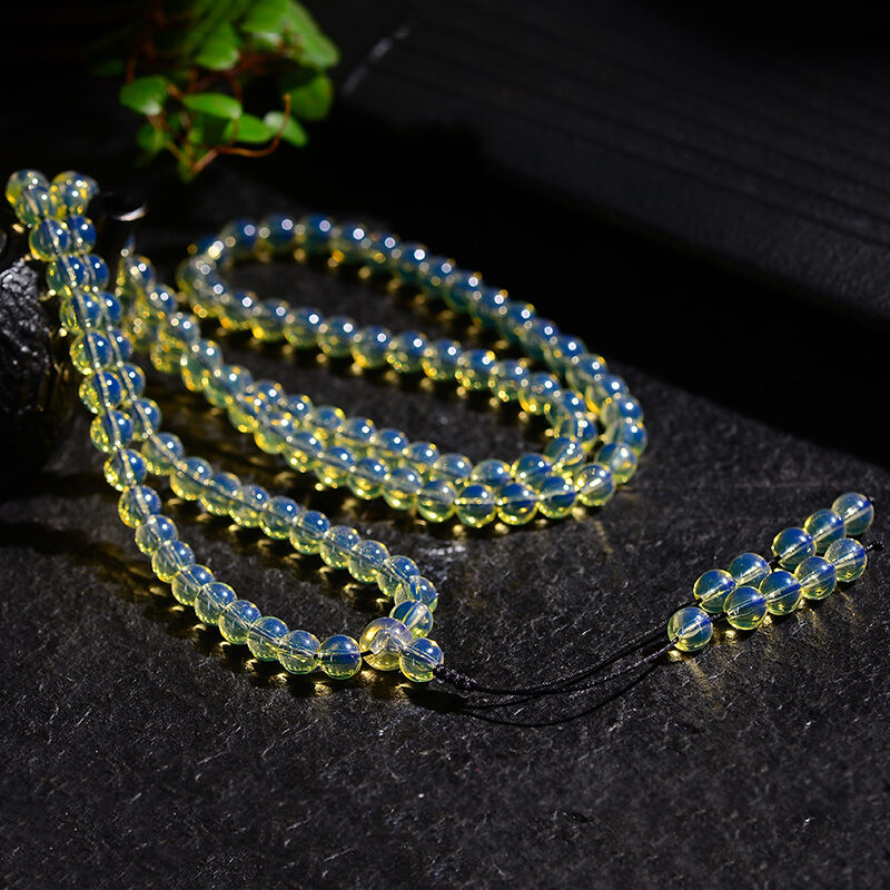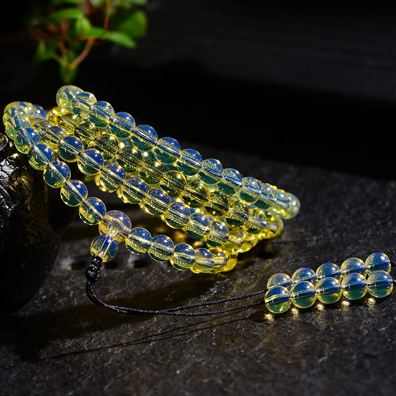 New Style Blue Amber Bracelet 108 PCs Buddha Beads Multi-Circle Bracelet Beeswax Amber round Beads for Men and Women