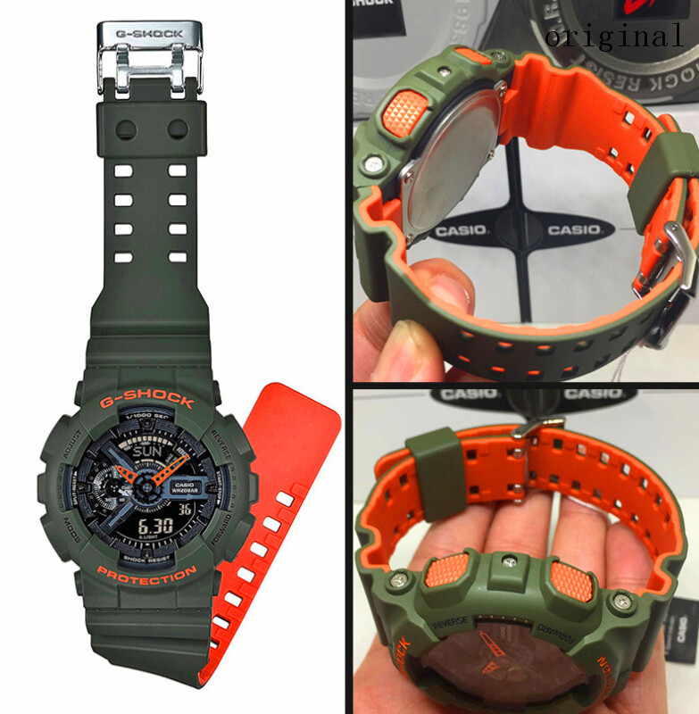 (HOT SALE) Original G SH0CK GA110 Men Sport Watch Dual Time Display 200M Water Resistant Shockproof and Waterproof World Time LED Auto Light Sports Wrist Watches with 2 Year Warranty GA-110LN-3A Green