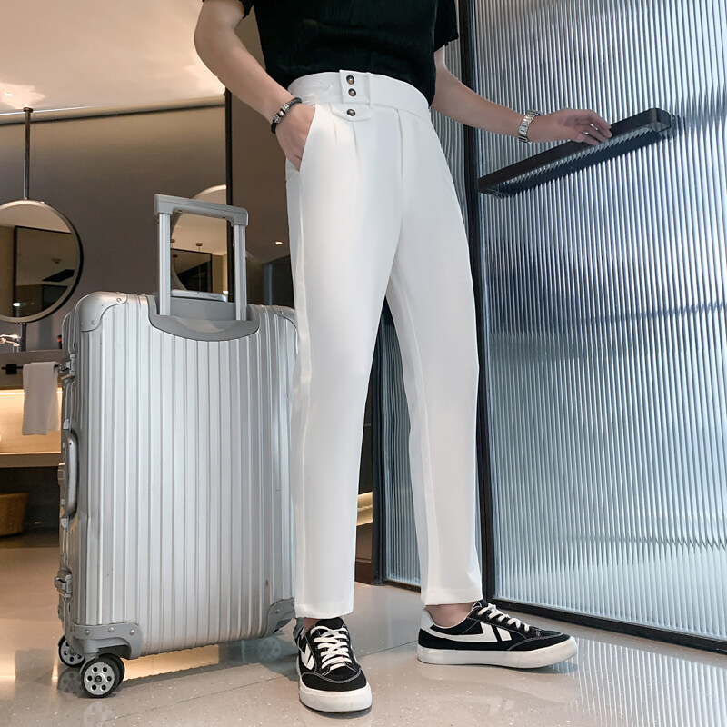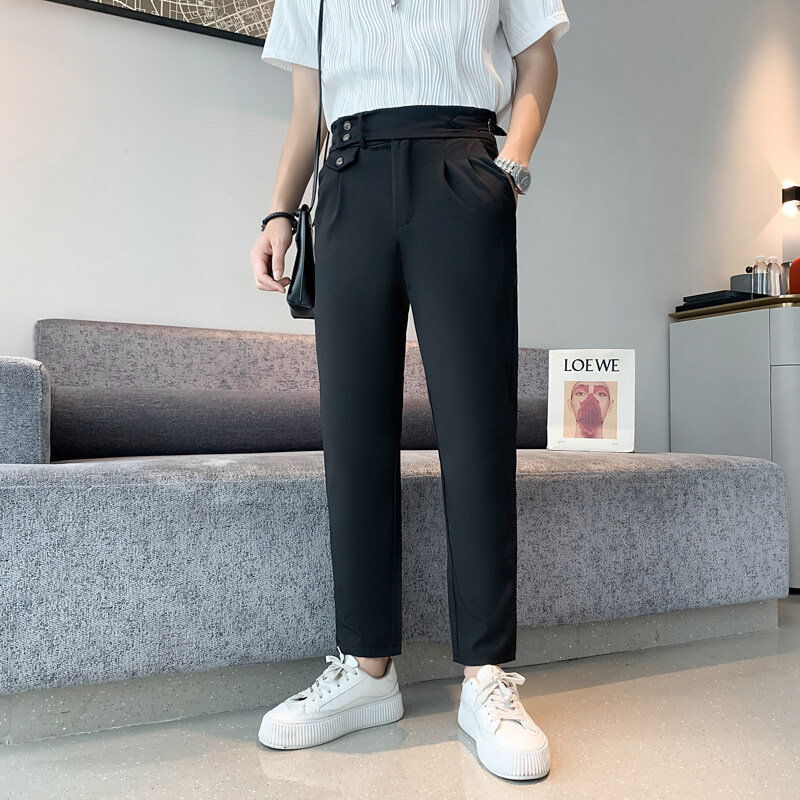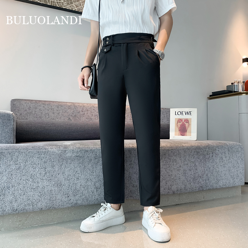BULUOLANDI Ninth Pants Men's Trousers High-Quality Drape Casual Pants Thin Men's Suit Pants