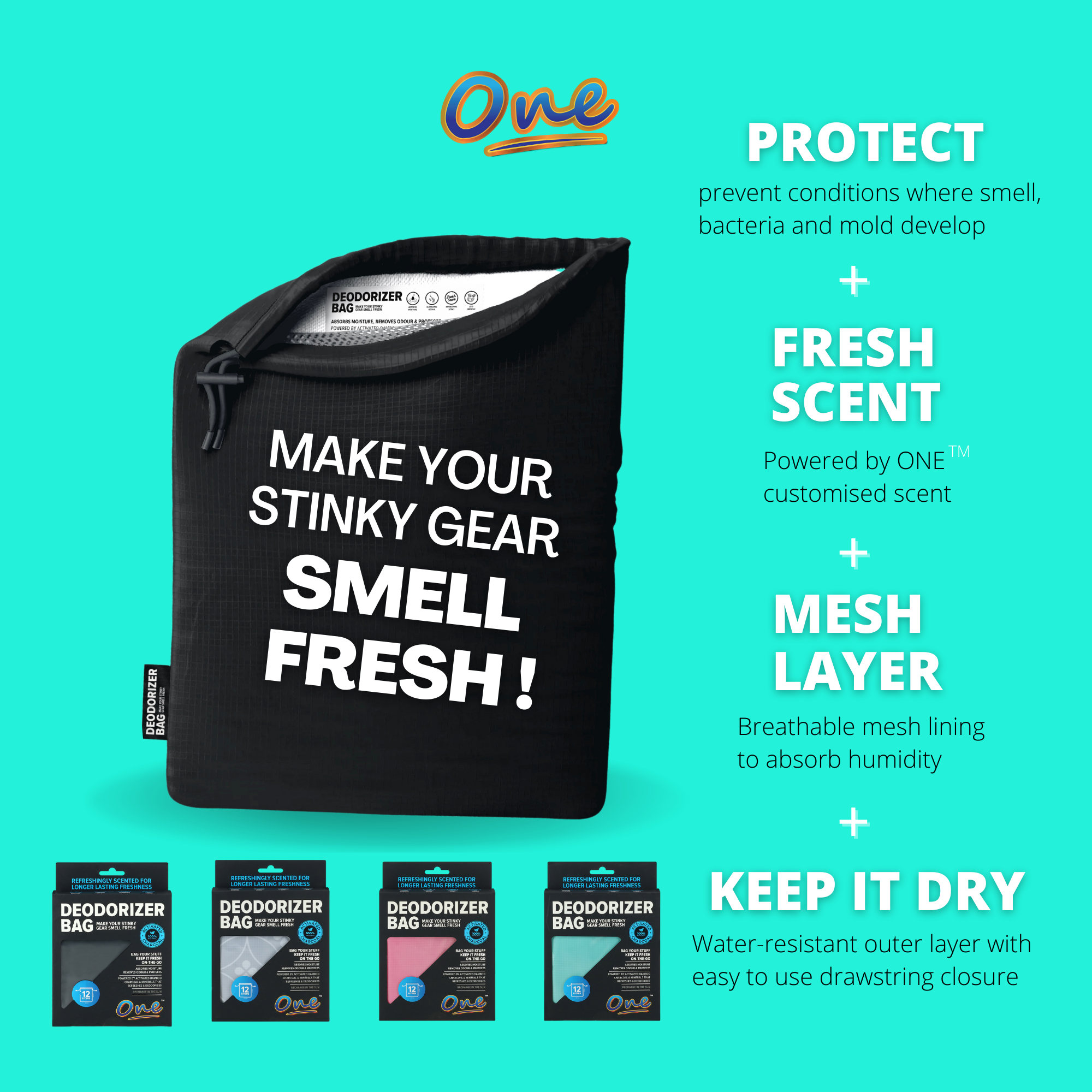 ONE Deodorizer bag refreshes your activewear and sports gear so you can reuse what you like for longer.