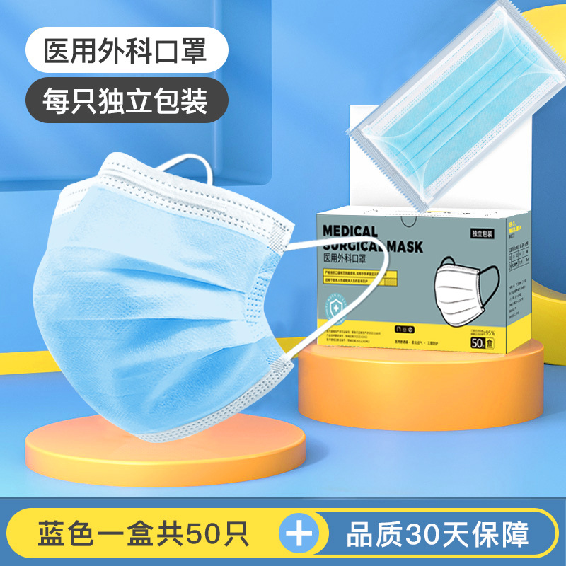 SG Ready Stock | Individually Packed 4 layered Surgical Medical Mask, 50 Masks in 1 Box, BFE 95%, Blue