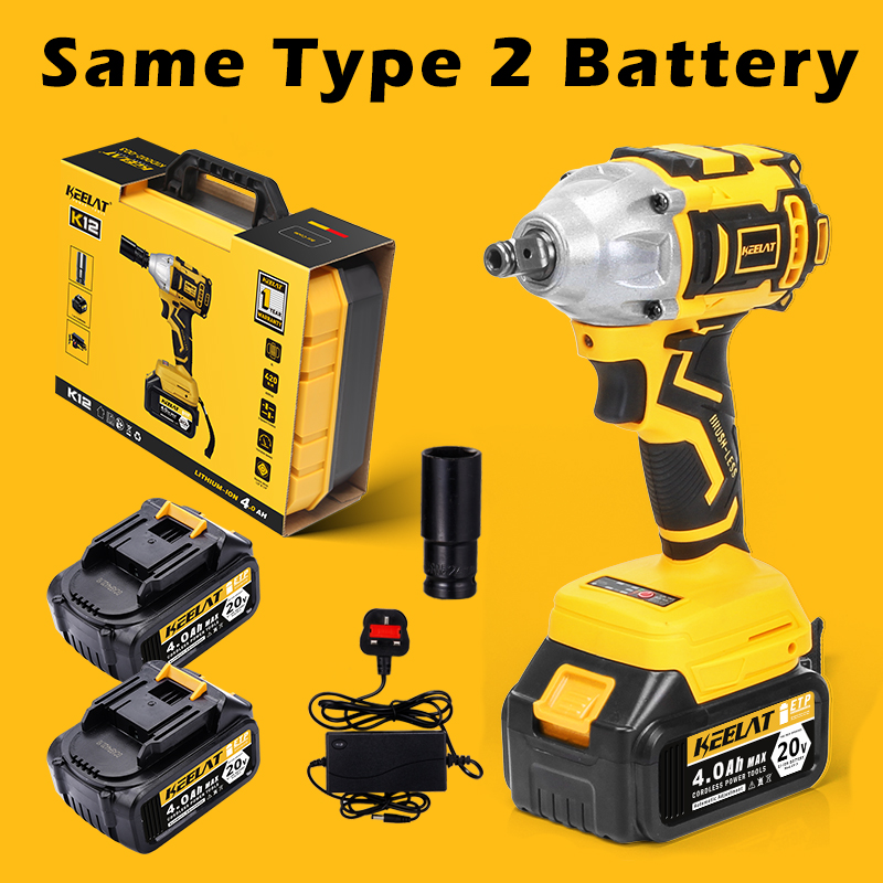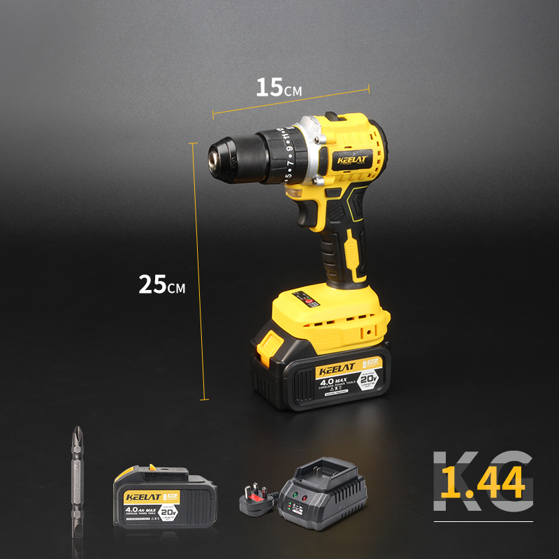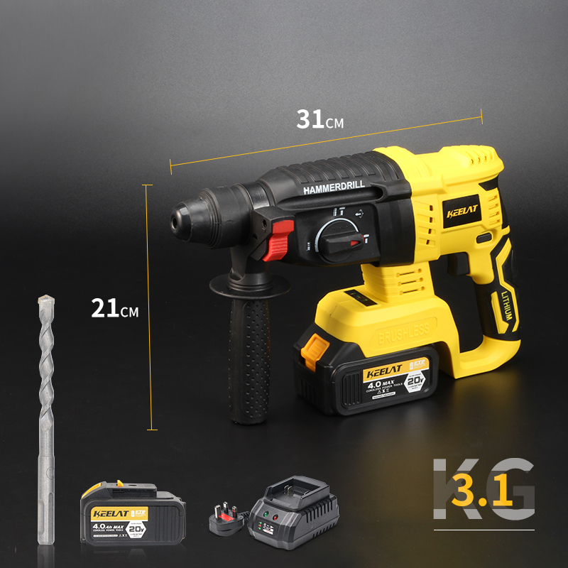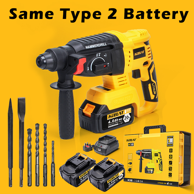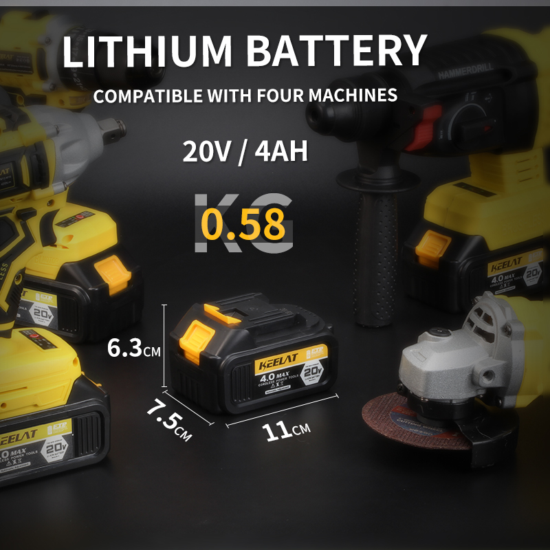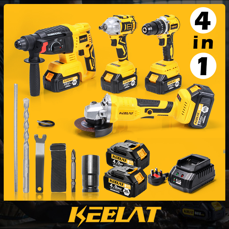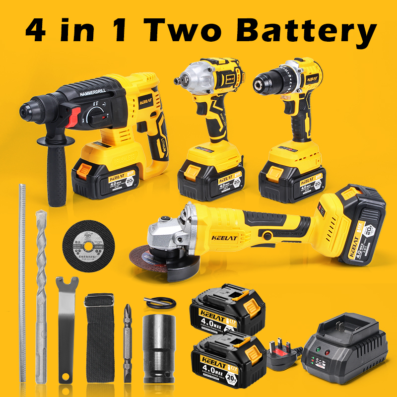 KEELAT 4-in-1 Brushless Cordless Impact Wrench Impact Drill Rotary Hammer Drill Angle Grinder Same Battery One Box Tool Set with 20V 4.0Ah Li-ion Battery