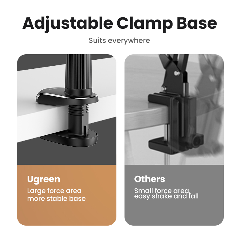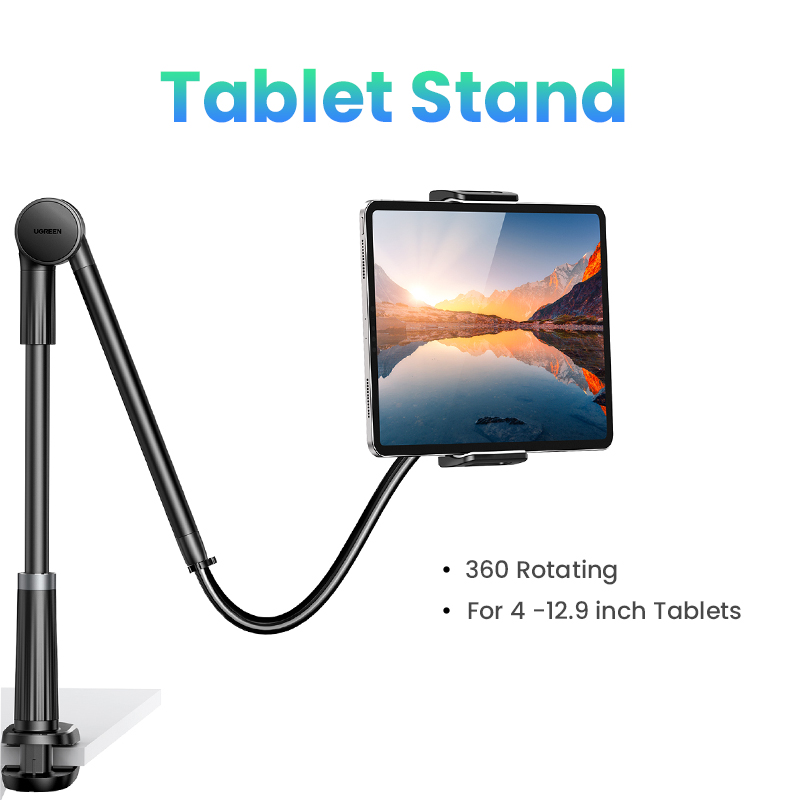 UGREEN Phone & Tablet Stand 360 Rotating Flexible Long Arms Tablet Stand Holder For 4-12.9'' Desktop Bed Lazy Bracket Clamp for Samsung Vivo Xiaomi iPhone iPad Air Kindle E-Reader
