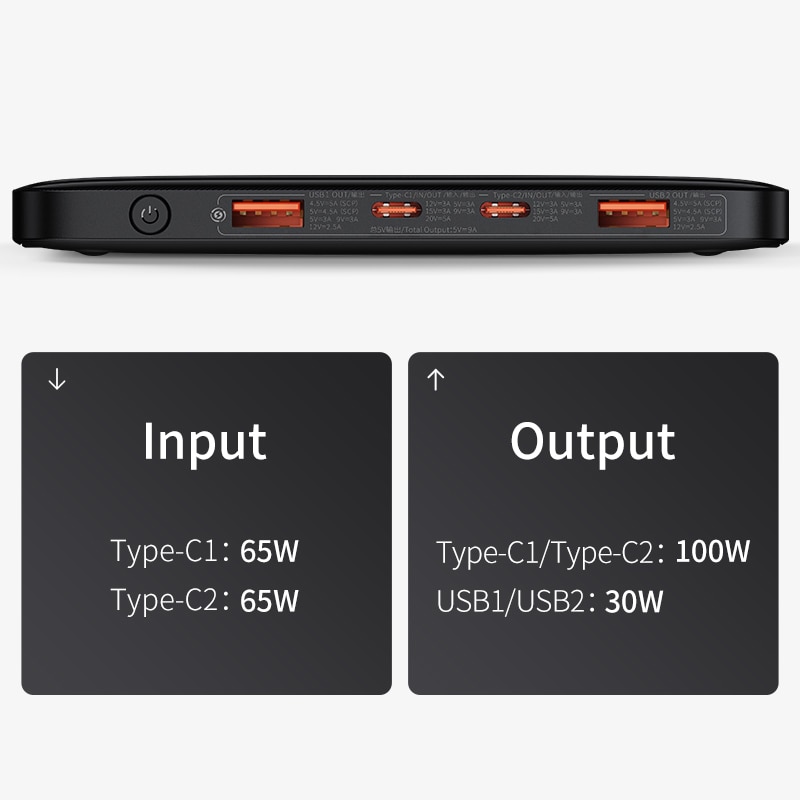 • Type-C1+Type-C2 + USB1/USB2 Output: 45W+30W+18W