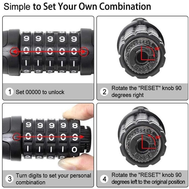 Length: 1m cable + 20cm 5-digit combination. Total approximately 1.2m
