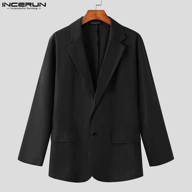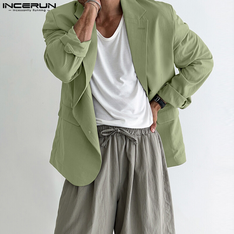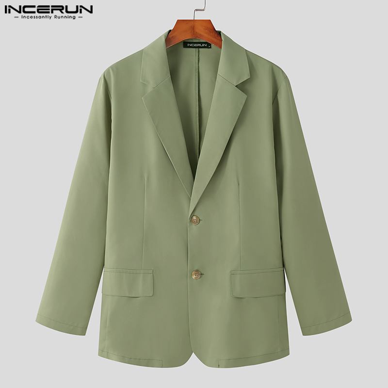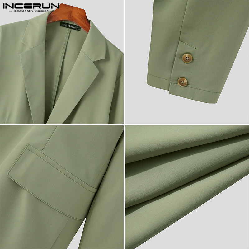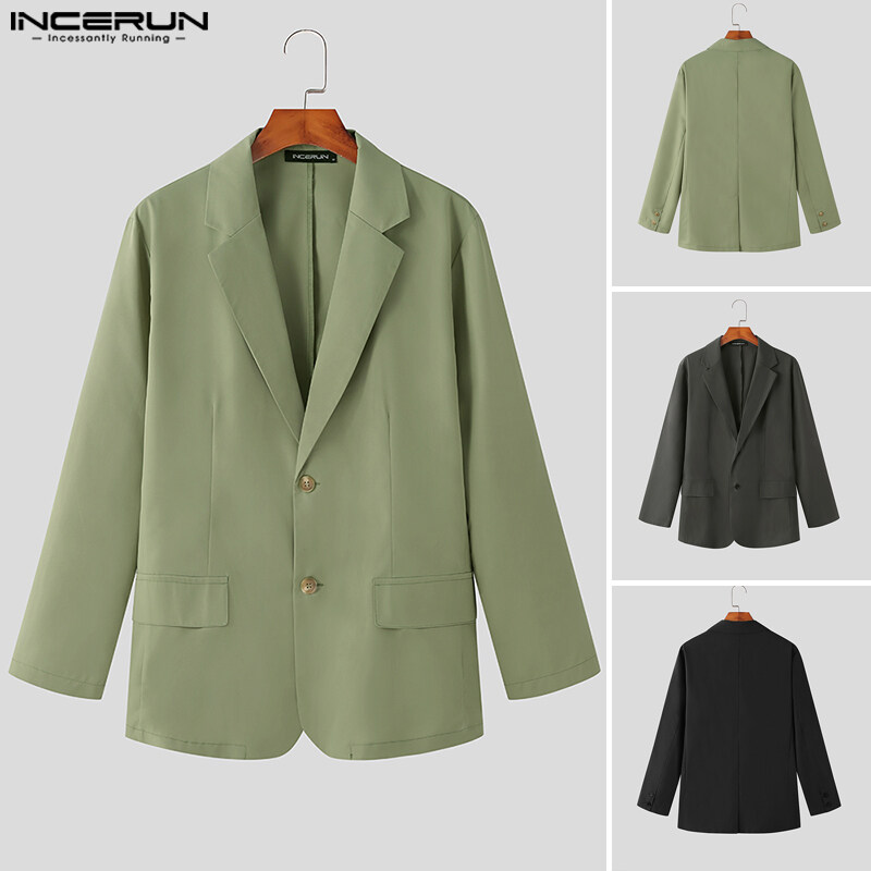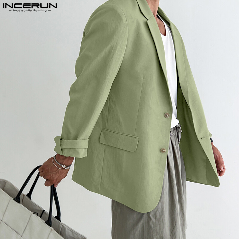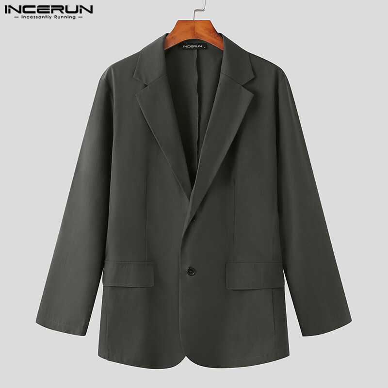 INCERUN Mens Long Sleeve Lapel Neck Blazer Jackets Casual Formal Holiday Coat Outwear Top (Korean Style)