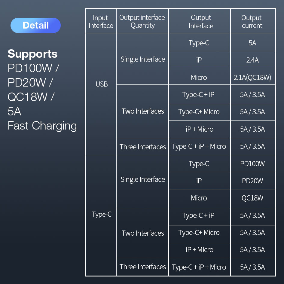 • Interface : USB + Type-C to Micro USB / iP / Type-C