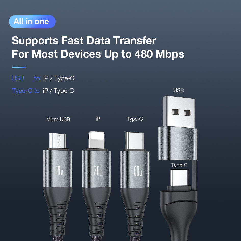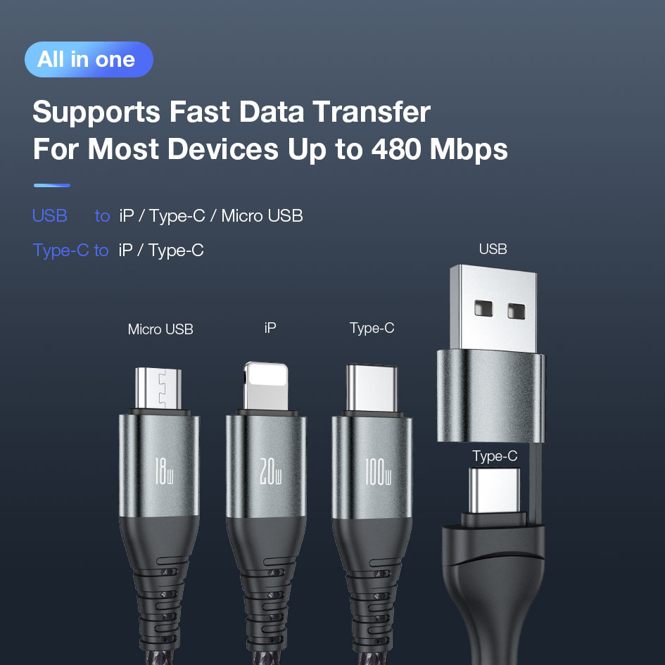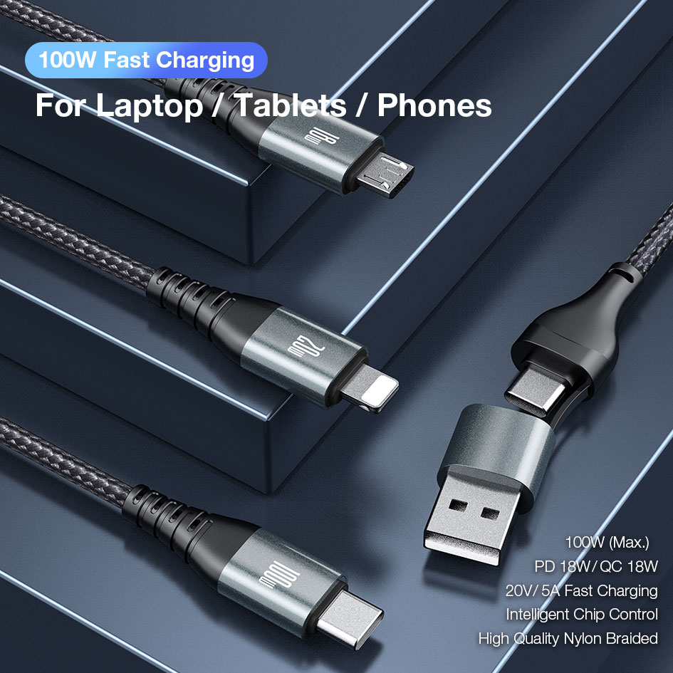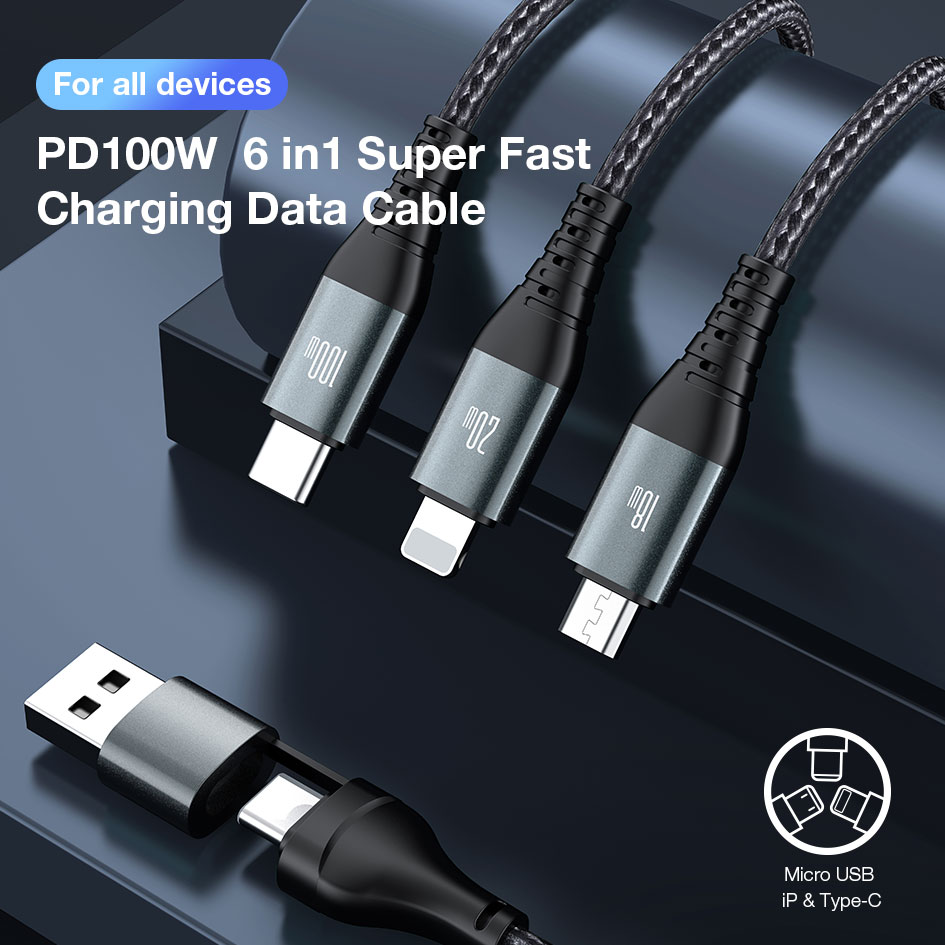 GXM 6in1 100W Quick Fast Charge Charging Data Cable for Laptop Tablets Phones For iPhone 14 13 12 Pro Max Lightning USB Type C to Type C MicroUSB MacBook Data Transfer Samsung Huawei OPPO VIVO Xiaomi
