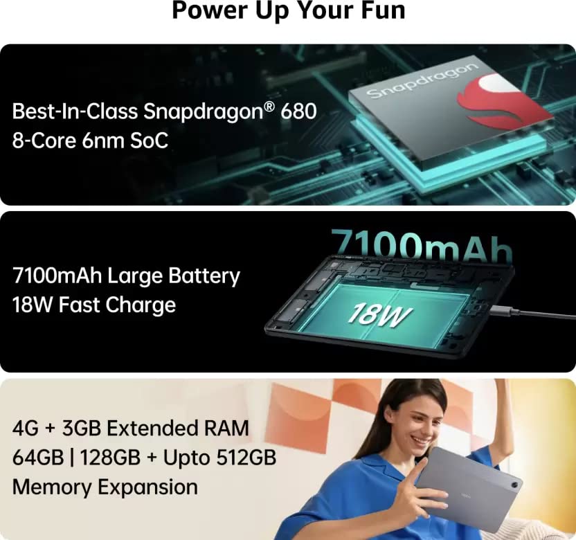 OPPO Pad Air is powered by the Qualcomm Snapdragon® 680 Mobile Platform. Its eight-core architecture and AI System Booster 2.1 allow users to operate easily even when multitasking. OPPO Pad Air sports a 10.36-inch 2K HD eye care display that has passed TÜV Rheinland's certification for low blue light eye protection which ensures clear and smooth pictures while effectively reducing eye fatigue.
