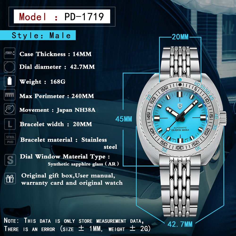 100% original Pagani Design Sub 300T Men's 42MM automatic mechanical watch Japan NH38A watch men 300M waterproof luxury Sapphire crystal watch mens mechanical watch 手表 PD-1719