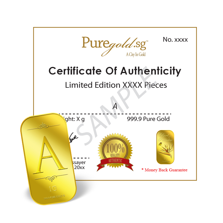 Puregold 1g Alphabet A 999.9 Pure Gold Bar