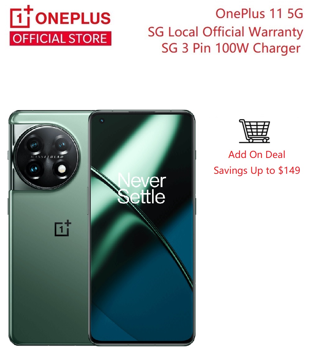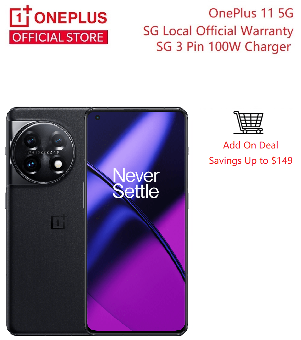 OnePlus 11 5G | SG Local Set 2 Yeas Official Warranty | SG 3 Pin 100W Charger | Support eSim | Up to $150 Saving for Add On Deal