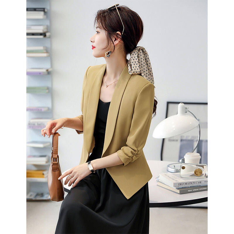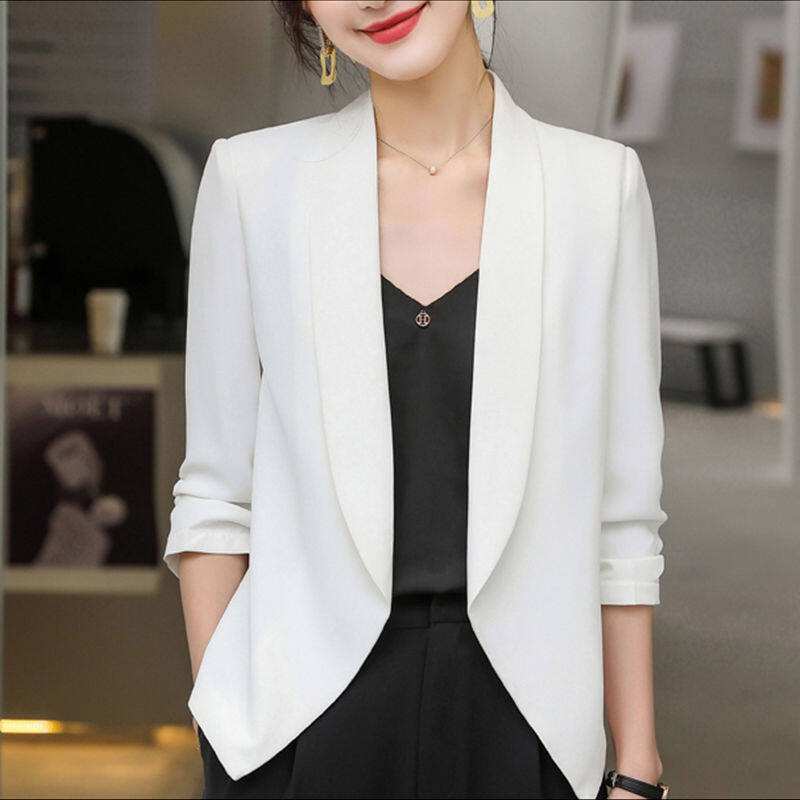 Spring Autumn Slim Fit Women Coats Formal Jackets Office Work Suits Fashion Coats Open Front Notched Ladies Pure Coat
