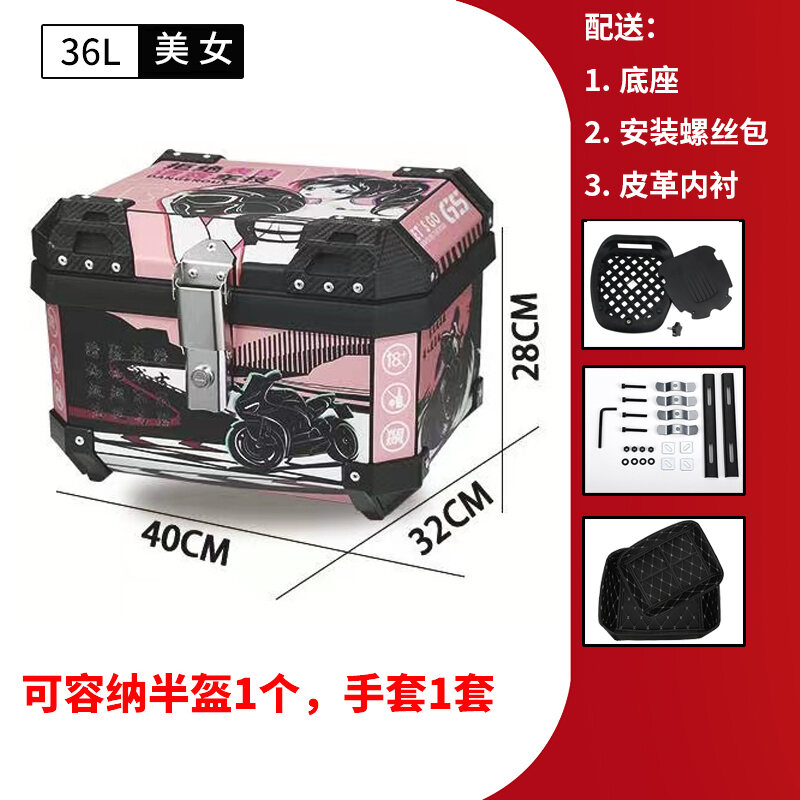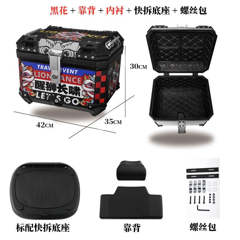 ABS Tail Box 45l Large Capacity Motorcycle Scooter Electric Vehicle Toolbox Quick Release Large Non-Aluminum Alloy Tail Box