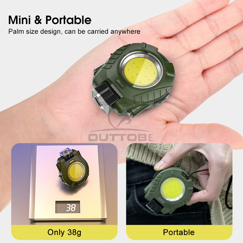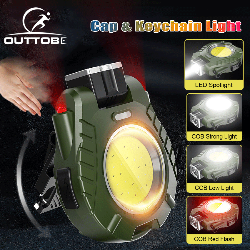 Outtobe Mini Keychain Light Portable Cap Light Induction Headlight Multi-Function Key Chain Lamp Waterproof Work Light USB Rechargeable Keychain Flashlight Emergency Lamp for Outdoor Camping Cycling