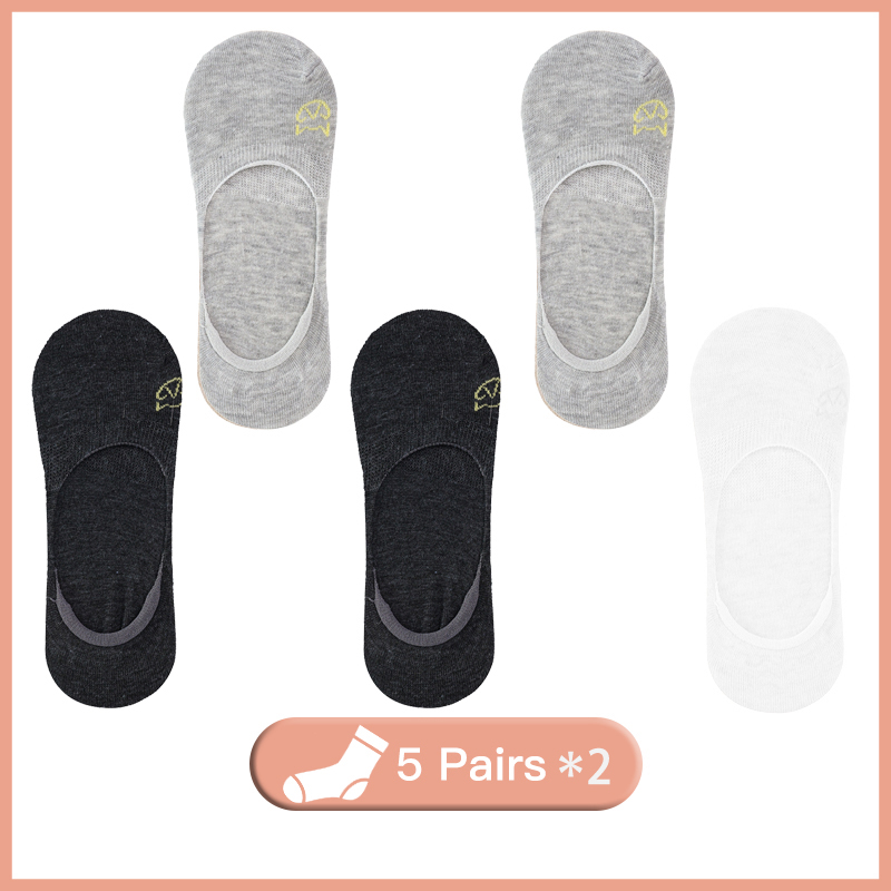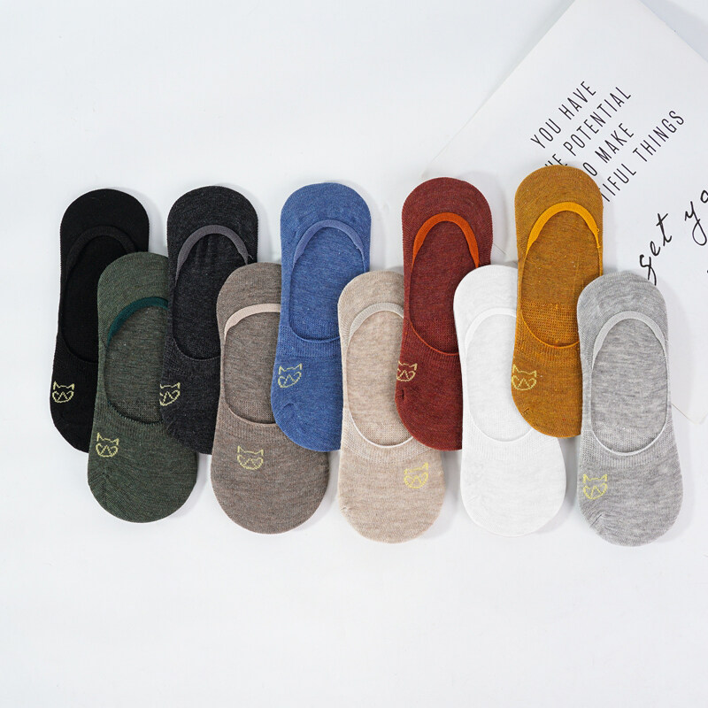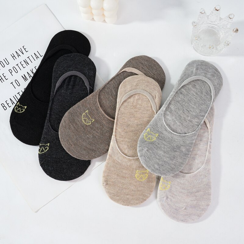 ECMLN 10 Pairs/pack Invisible Low Cut Non Slip Boat Socks for Women Summer Thin Embroidery Crew Socks
