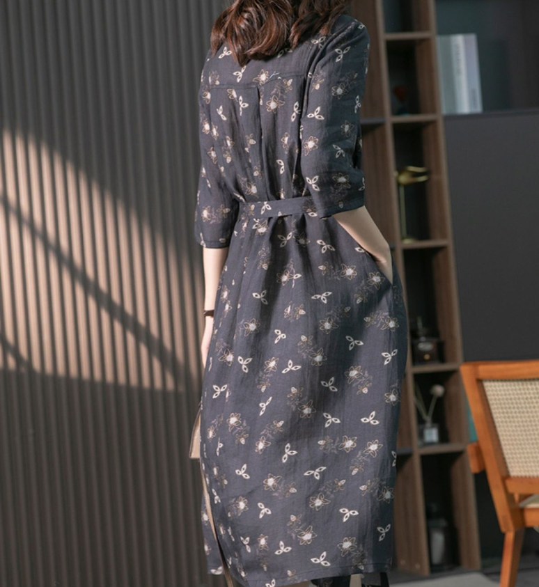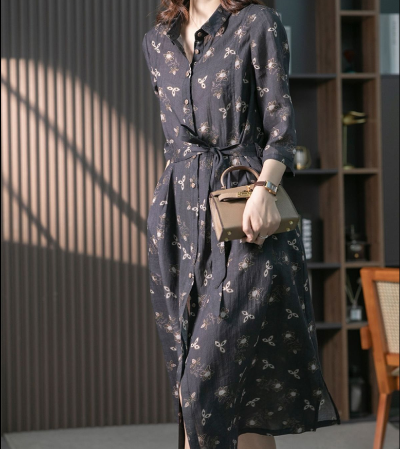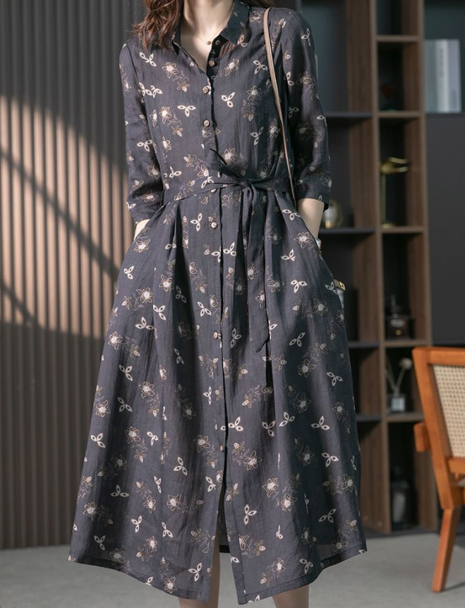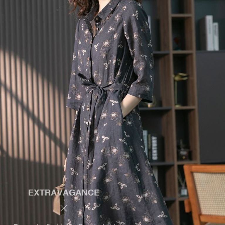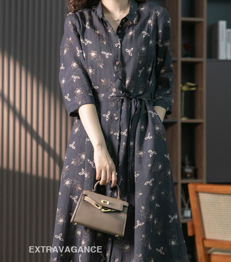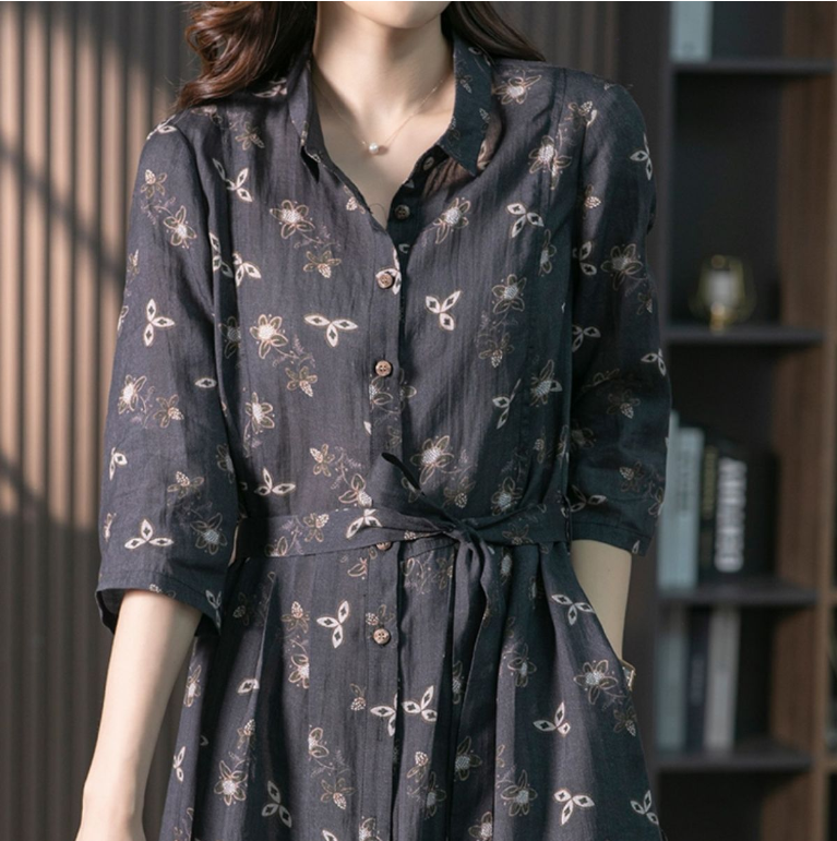 CottonDesign Dresses for Women New Summer Women's Dress Fashion Printing LOOSE Casual Lace Up Lapel Elegant Vintage Long Shirt Dress Oversized 3BD0322