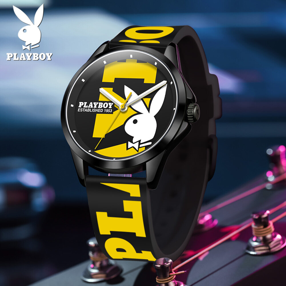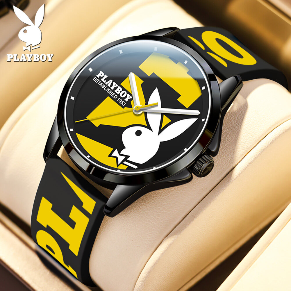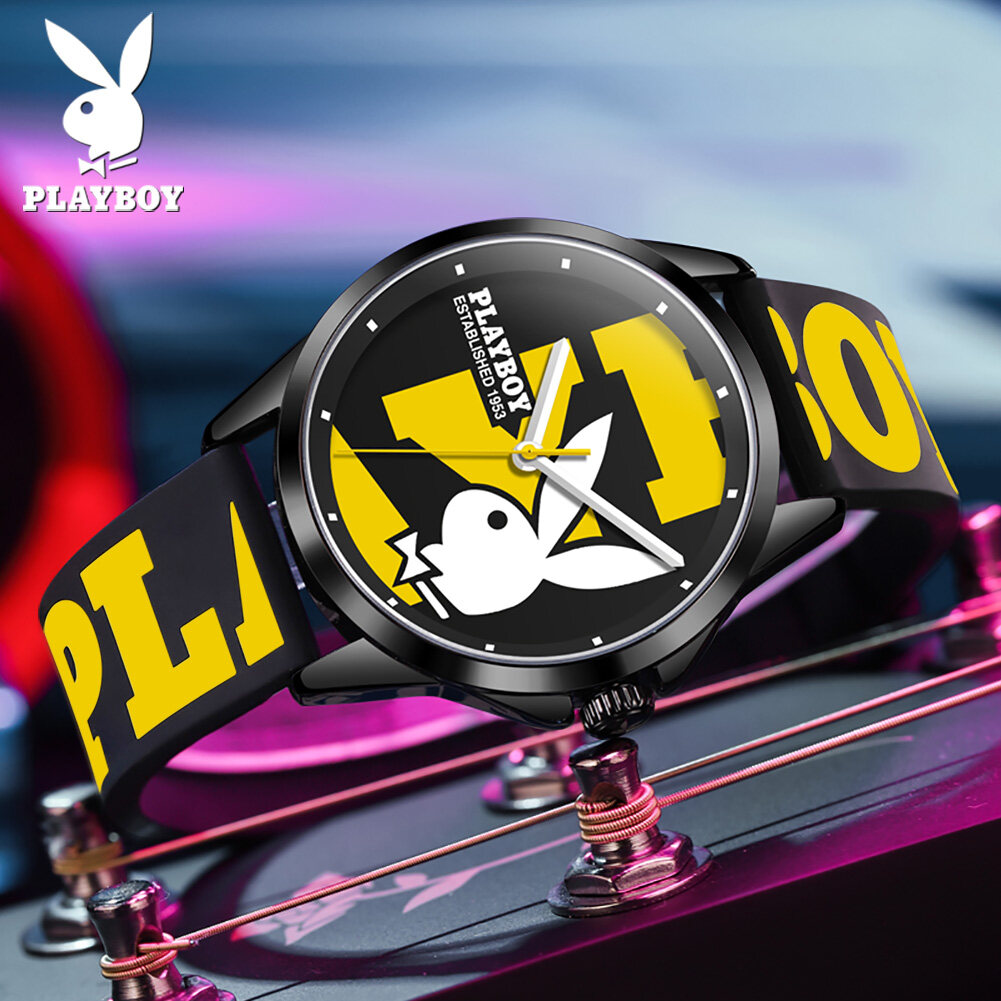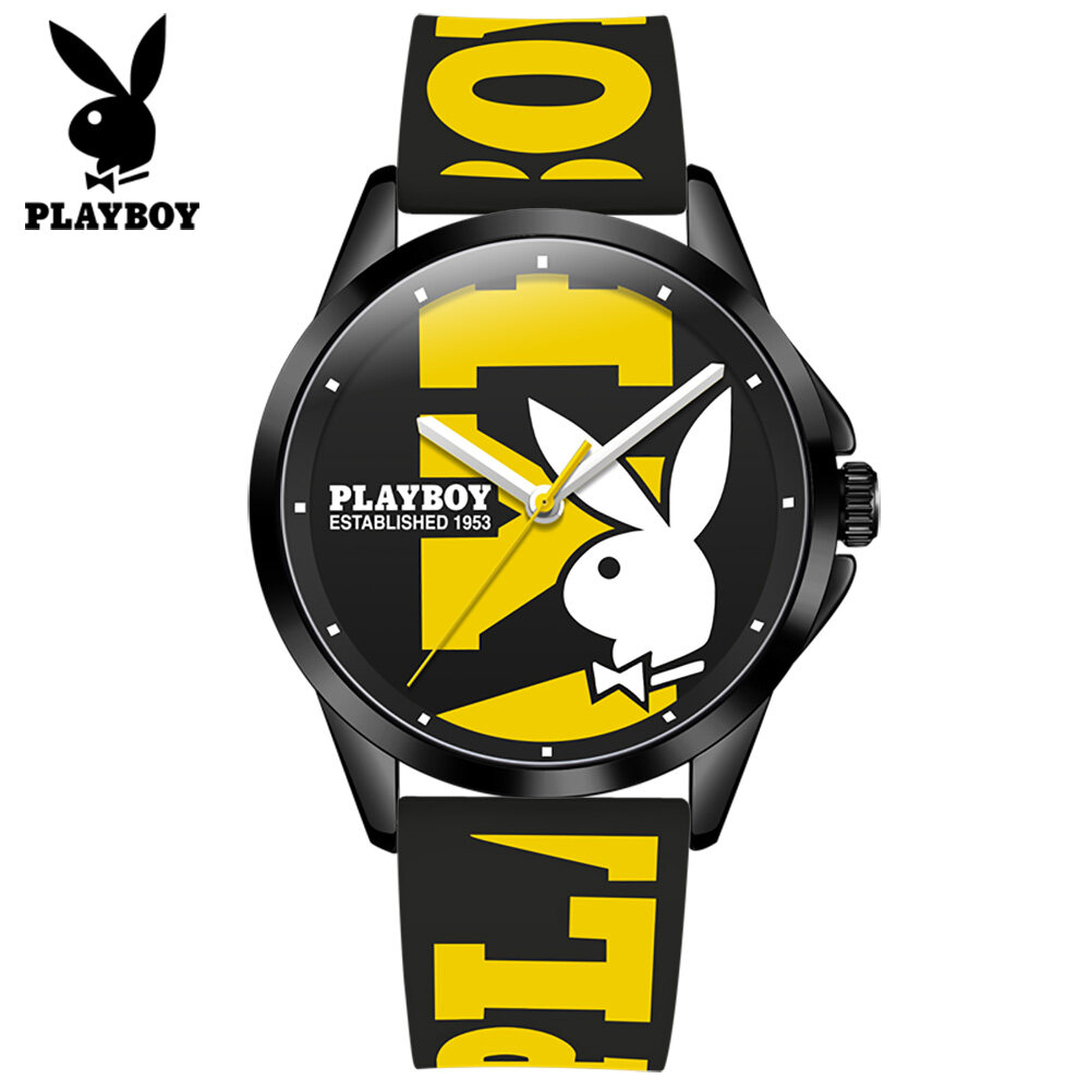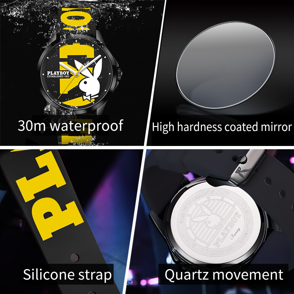 PLAYBOY Watch for Men Original Waterproof Simple Dial Yellow Silicone strap Sports Men Watches 2023 NEW